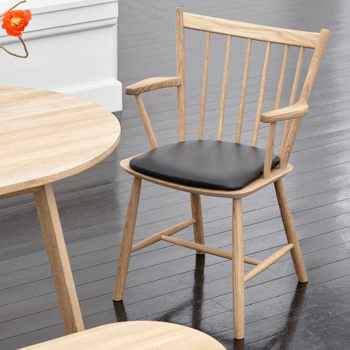 Le modèle J42 chaise à accoudoirs de HAY est une reproduction de la chaise à accoudoirs classique conçue par Børge Mogensen. Conçue dès 1933, la chaise se caractérise par ses entretoises en bois horizontales et verticales, qui assurent le dossier courbé et les accoudoirs droits. Une large surface d'assise invite à s'asseoir et à s'attarder, ce qui fait que la chaise convient aussi bien à un bureau qu'à une table de salle à manger. Cette chaise à accoudoirs attire également l'attention dans le salon ou la chambre à coucher.