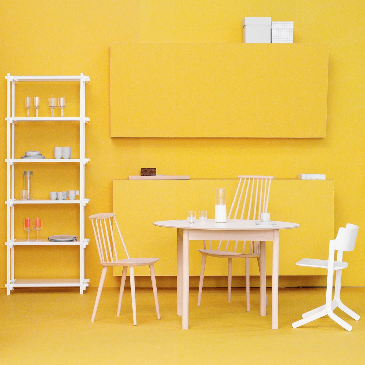 La fabrication en bois de hêtre et la forme élancée des tiges au niveau du dossier confèrent à la J77 Chair de HAY une impression à la fois légère et massive. La large assise rend le J77 confortable, tandis que son design classique et minimaliste lui permet de s'intégrer dans des environnements très différents.
