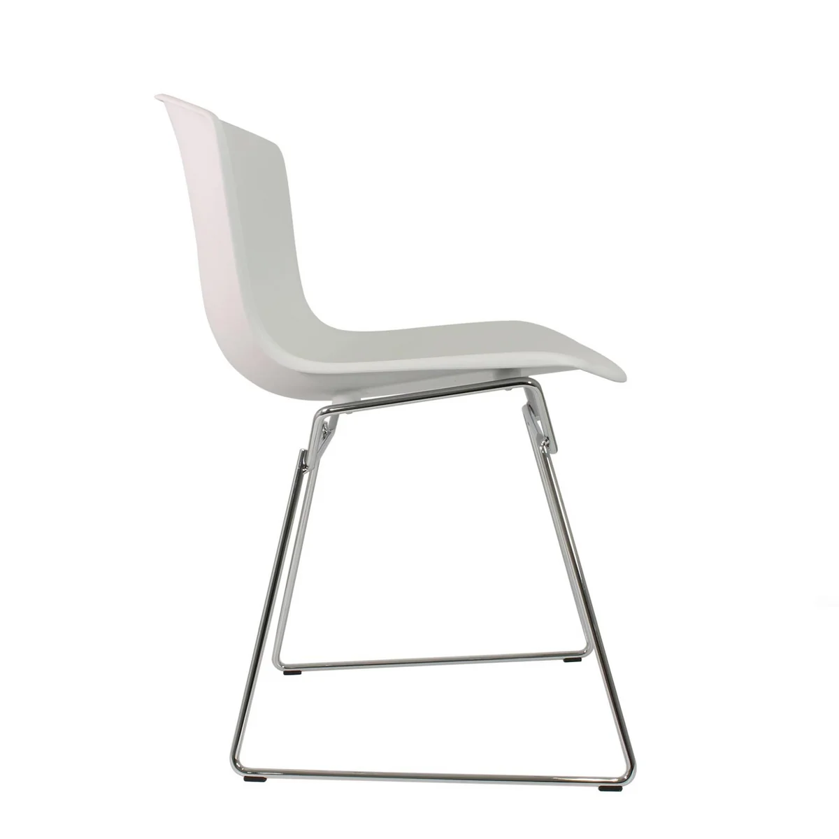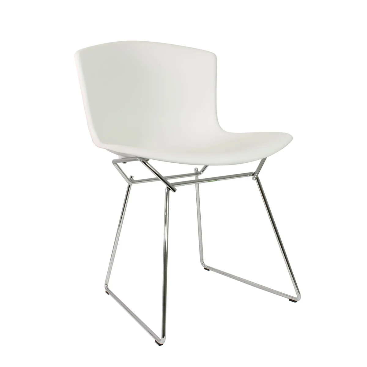 La chaise en plastique est une déclinaison de la famille Bertoia des piétements en fil métallique, qui sont tous étirés et soudés à la main selon un procédé très complexe. La chaise en plastique Bertoia se compose d'une coque en plastique, disponible en plusieurs couleurs, et d'un profilé en acier soudé, chromé ou, sur demande, laqué blanc ou noir.