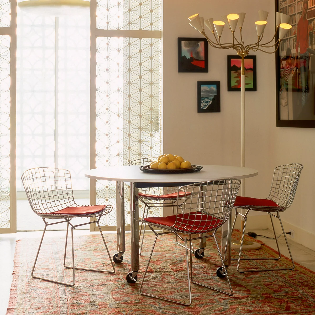 Au début des années 50, le designer Harry Bertoia a conçu une série de sièges à structure en acier, "composés principalement d'air" selon le designer lui-même. La chaise Bertoia et Diamond Char sont les plus connues de ces créations. Élevées depuis au rang de classiques du design, ces créations sont emblématiques du design innovant des années 50 et de leur inventeur : Harry Bertoia .