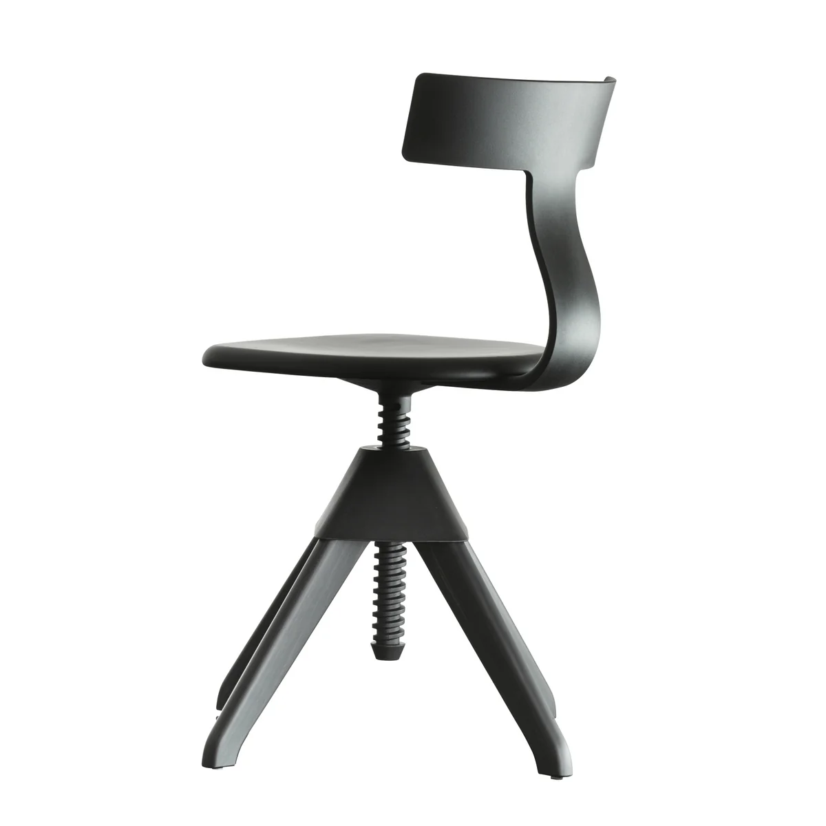 S'inspirant des meubles traditionnels d'atelier, Konstantin Grcic reprend les éléments industriels typiques et en fait des créations à la fois fonctionnelles et attrayantes. Grâce à sa construction intelligente et à son vérin à vis en polypropylène renforcé en fibre de verre, la chaise Tuffy pivote et son assise peut être réglée de 42 à 61 cm de hauteur.