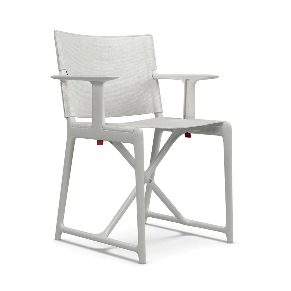 Le cadre de la chaise pour l'intérieur et l'extérieur est en polypropylène et renforcé de fibre de verre. L'assise et le dossier sont fabriqués dans un tissu résistant aux intempéries et robuste (Plastitex "Thinny_New York"). Le Magis logo est embossé sur toutes les chaises et garantit son authenticité.