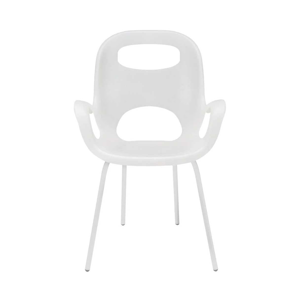 Oh Chair d'Umbra est une chaise empilable solide mais néanmoins légère et flexible. Sa surface d'assise est en polypropylène et le piètement en acier revêtu par poudre, la chaise est ainsi idéale pour les visites impromptues. Plusieurs chaises peuvent être empilées pour un rangement peu encombrant.