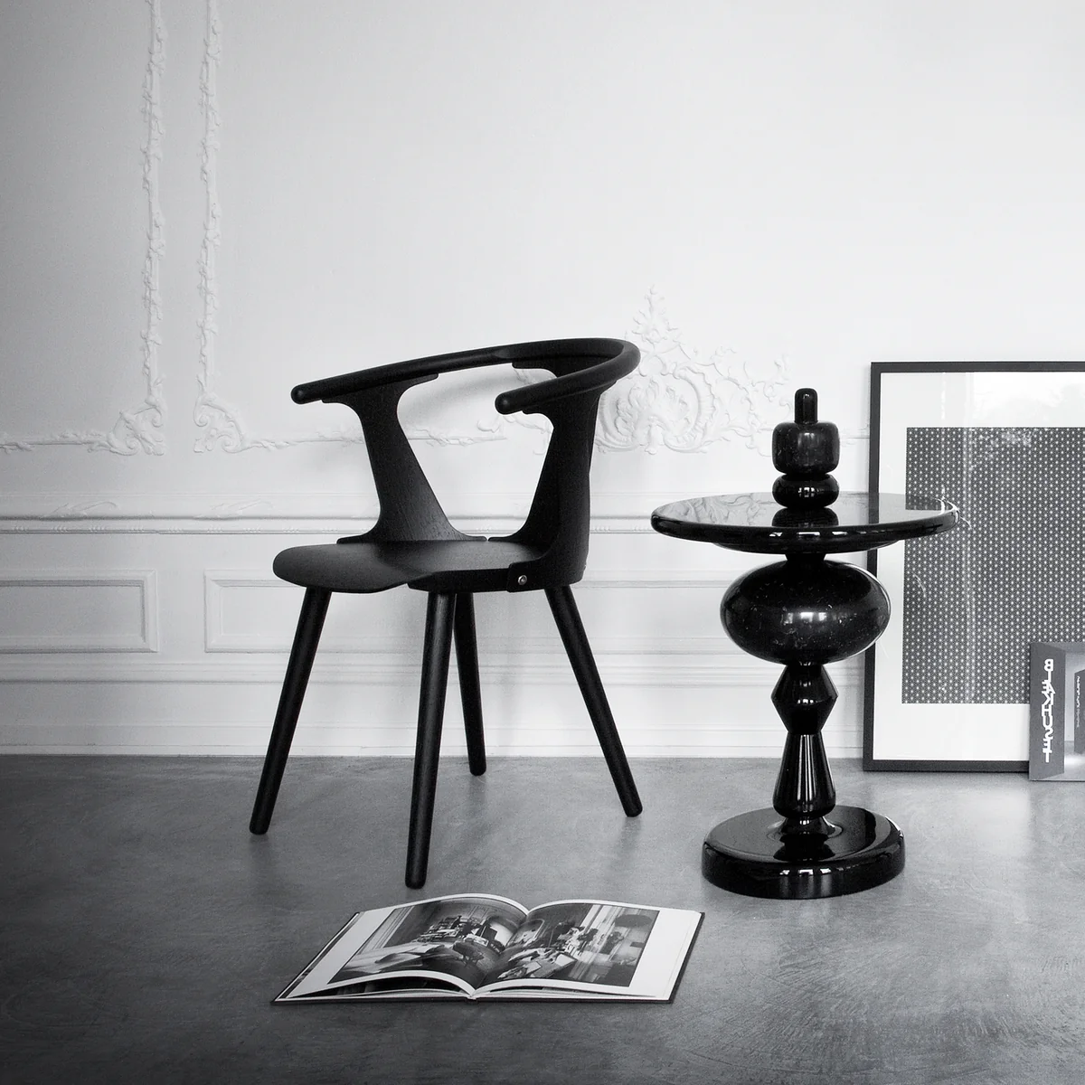 Le travail traditionnel du bois scandinave et les idées innovantes et détaillées du designer Sami Kallio se retrouvent sur la chaise In Between et transforment la chaise en un objet de design diffus qui joue avec tous les sens.