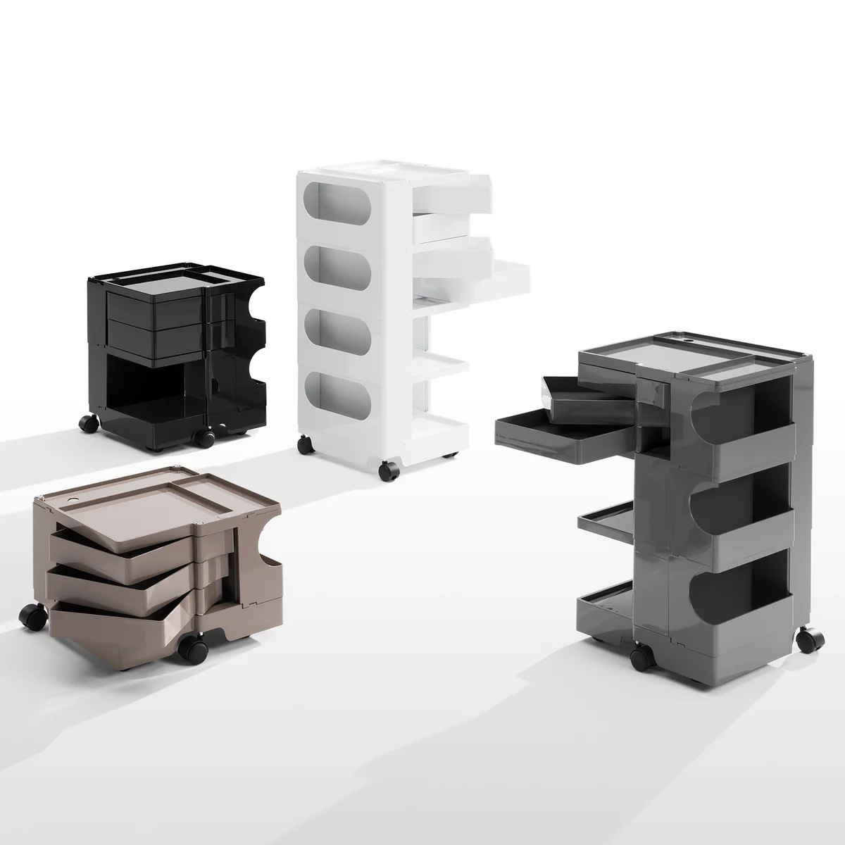 Les rangements de Joe Colombo Boby Caisson roulant, une solution belle et pratique pour tous les domaines où l'ordre est nécessaire, qu'il s'agisse de petites pièces ou de papiers à la maison, à l'atelier ou au bureau. Le trolley de Joe Collombo de B-Line permet de garder les choses en ordre.