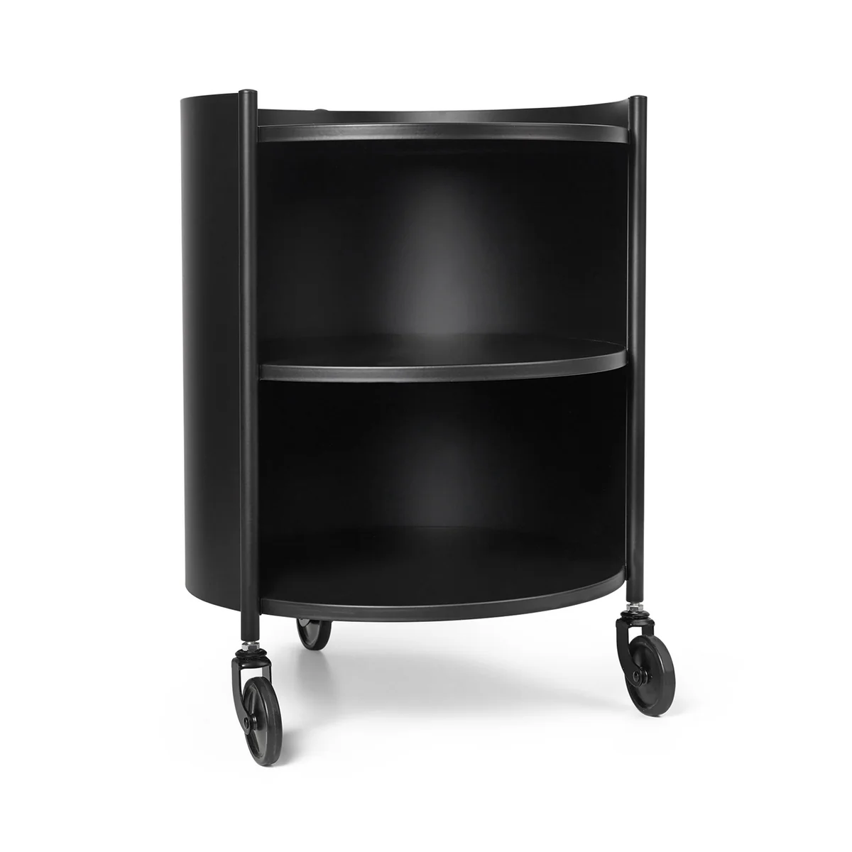 Eve Storage est un meuble polyvalent en acier robuste à revêtement par poudre avec trois étagères, dont deux sont partiellement dissimulées derrière le cadre élancé, qui se distingue par sa forme cylindrique attrayante et ses trois grandes roues. Placez une lampe de table sur l'étagère supérieure et utilisez Eve Storage comme table de nuit pratique, utilisez-le dans le salon comme table d'appoint élégante ou au bureau pour ranger vos objets les plus importants. Grâce aux roulettes fonctionnelles, Storage peut être déplacé Eve Storage se déplace facilement d'une pièce à l'autre et répond ainsi à tous vos besoins de rangement.