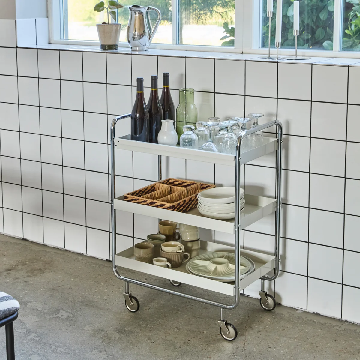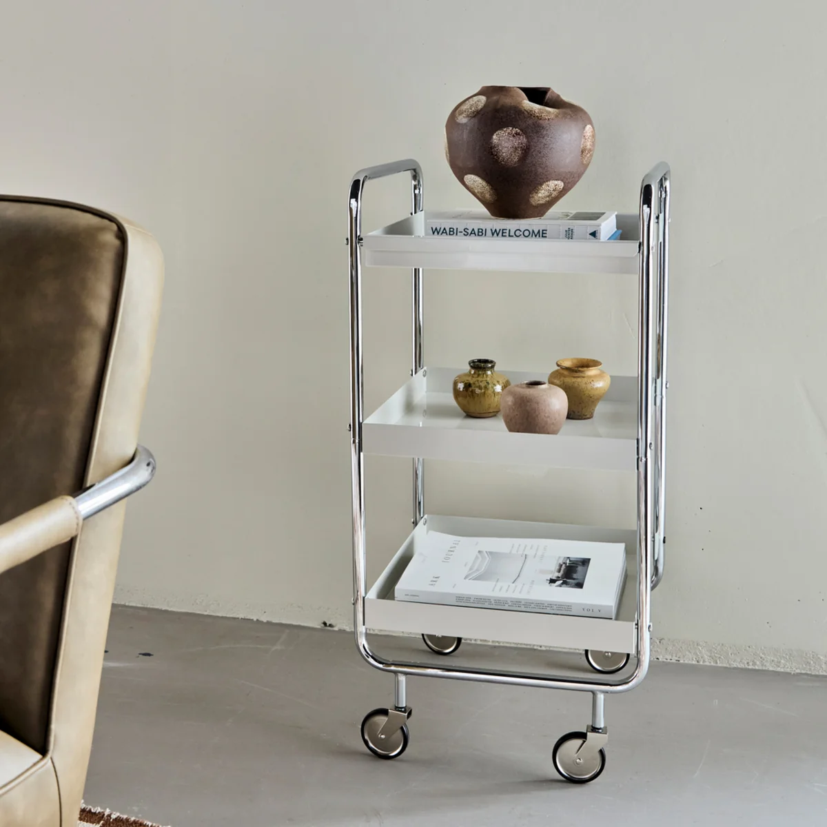 Le chariot de service Roll de House Doctor est un trolley pratique et flexible pour l'espace de vie. Ce chariot astucieux en acier est disponible en différentes couleurs et tailles avec des petites roues élégantes.