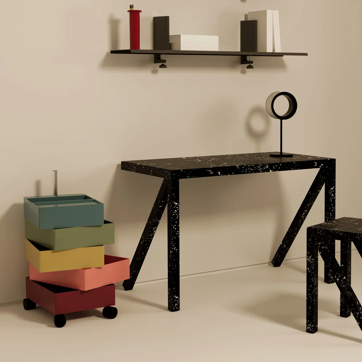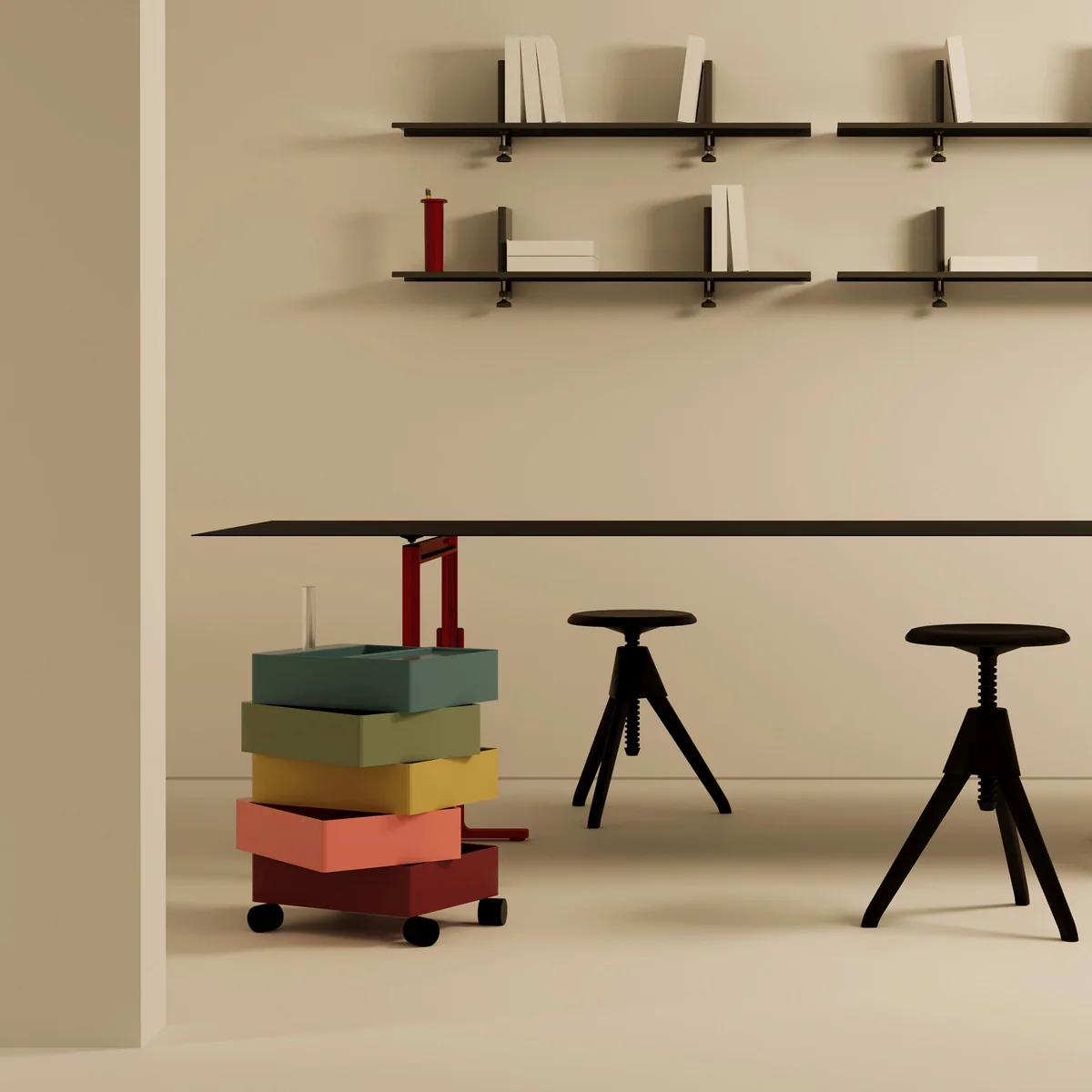 Les matériaux brillants ont été intégrés par Konstantin Grcic dans un design sobre qui convainc aussi bien seul qu'avec la chaise 360° assortie. Selon les besoins, Magis propose le conteneur 360° en deux hauteurs et en différentes couleurs. Un plateau supplémentaire est également disponible pour recouvrir la surface de rangement supérieure.