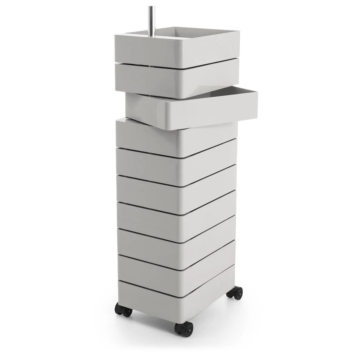 Le caisson 360° a été conçu par Konstantin Grcic en même temps que la chaise du même nom pour le fabricant italien Magis . L'idée derrière ce caisson à tiroirs est de promouvoir le travail dynamique. Les différents tiroirs peuvent pivoter autour de 360° et peuvent être utilisés de n'importe quel côté.