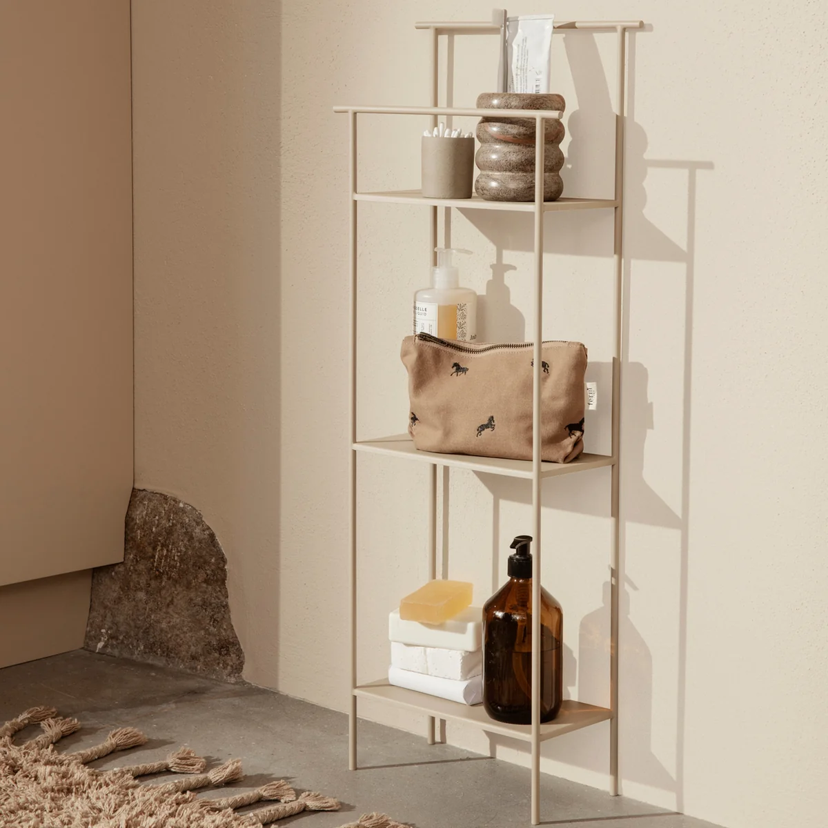 L'étagère Dora de Ferm Living est une étagère chic et simple à utiliser dans la salle de bains. Avec son cadre métallique mince et recouvert de poudre, il est idéal pour une utilisation dans des conditions humides. L'étagère peut contenir tous les ustensiles de salle de bains importants. Grâce au revêtement, il peut même être placé dans la douche !