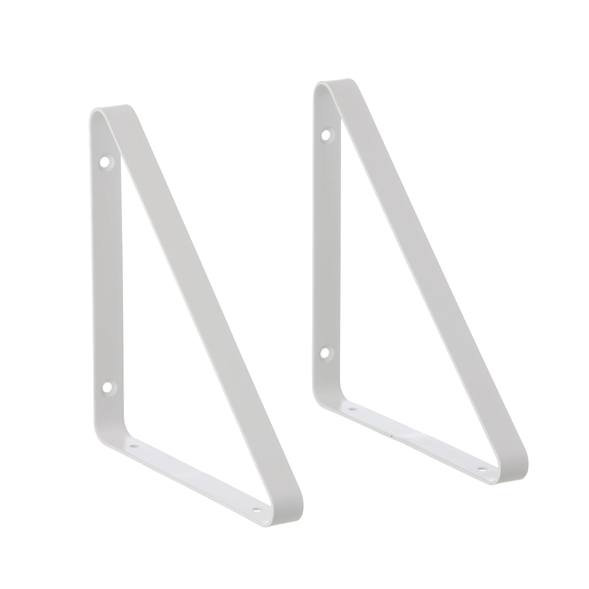 Le système d'étagères Shelf Hangers se compose de deux éléments : la surface de l'étagère en bois de chêne en variante teintée, huilée ou fumée, ainsi que deux suspensions laquées qui permettent une installation flexible.