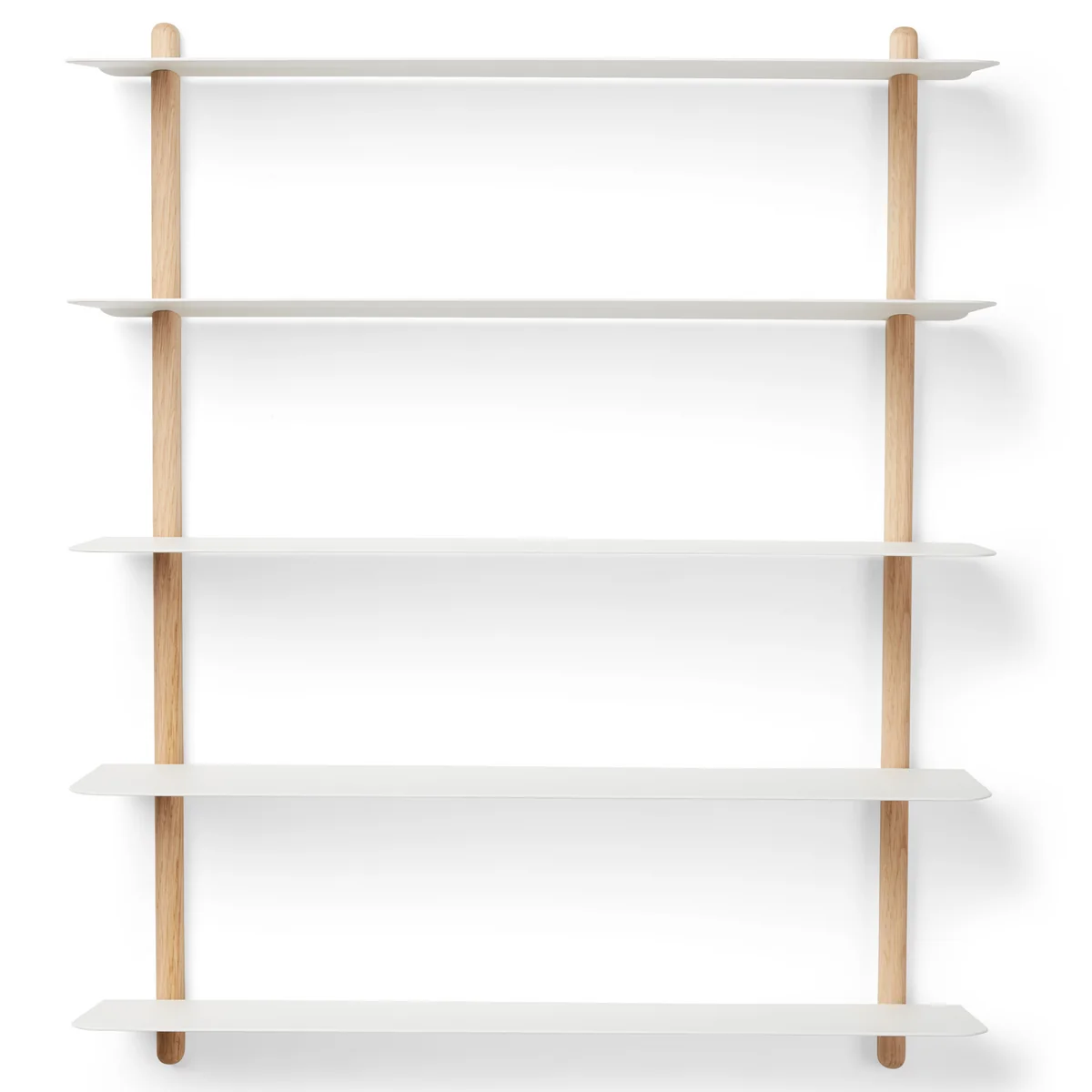 Les vases et les livres peuvent être mis en valeur dans Nivo étagère murale sont parfaitement mis en valeur. L'étagère est disponible en différentes couleurs et configurations. La version classique peut supporter une charge maximale de 3 kg. par étagère, la variante en Large peut supporter un poids allant jusqu'à 10 kg.
