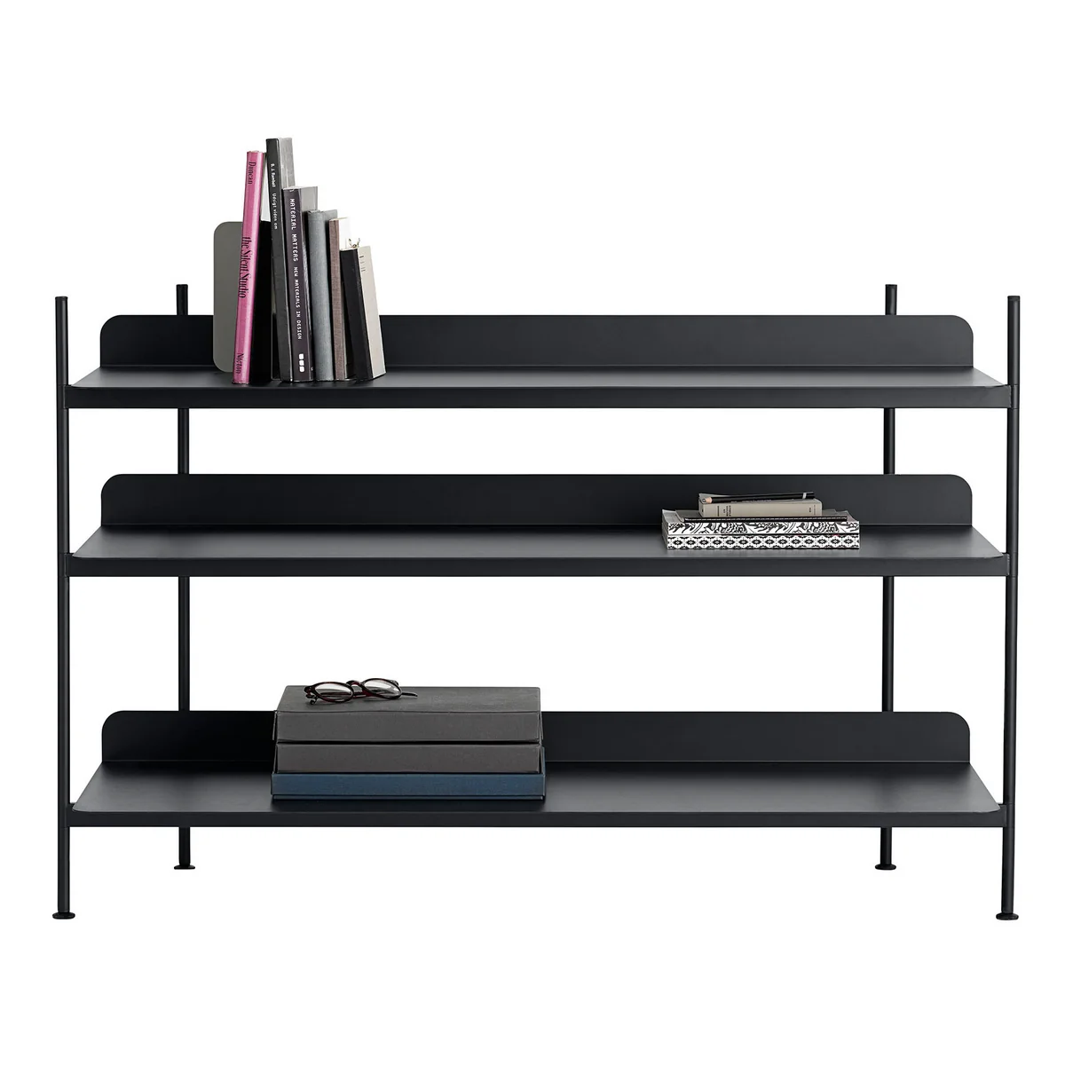 Compile est une version moderne du système d’étagères classique. Un niveau se compose d’une étagère avec deux tubes de construction qui sont disponibles en trois hauteurs différentes. Ainsi, vous pouvez choisir vous-même l’espace entre les étagères.