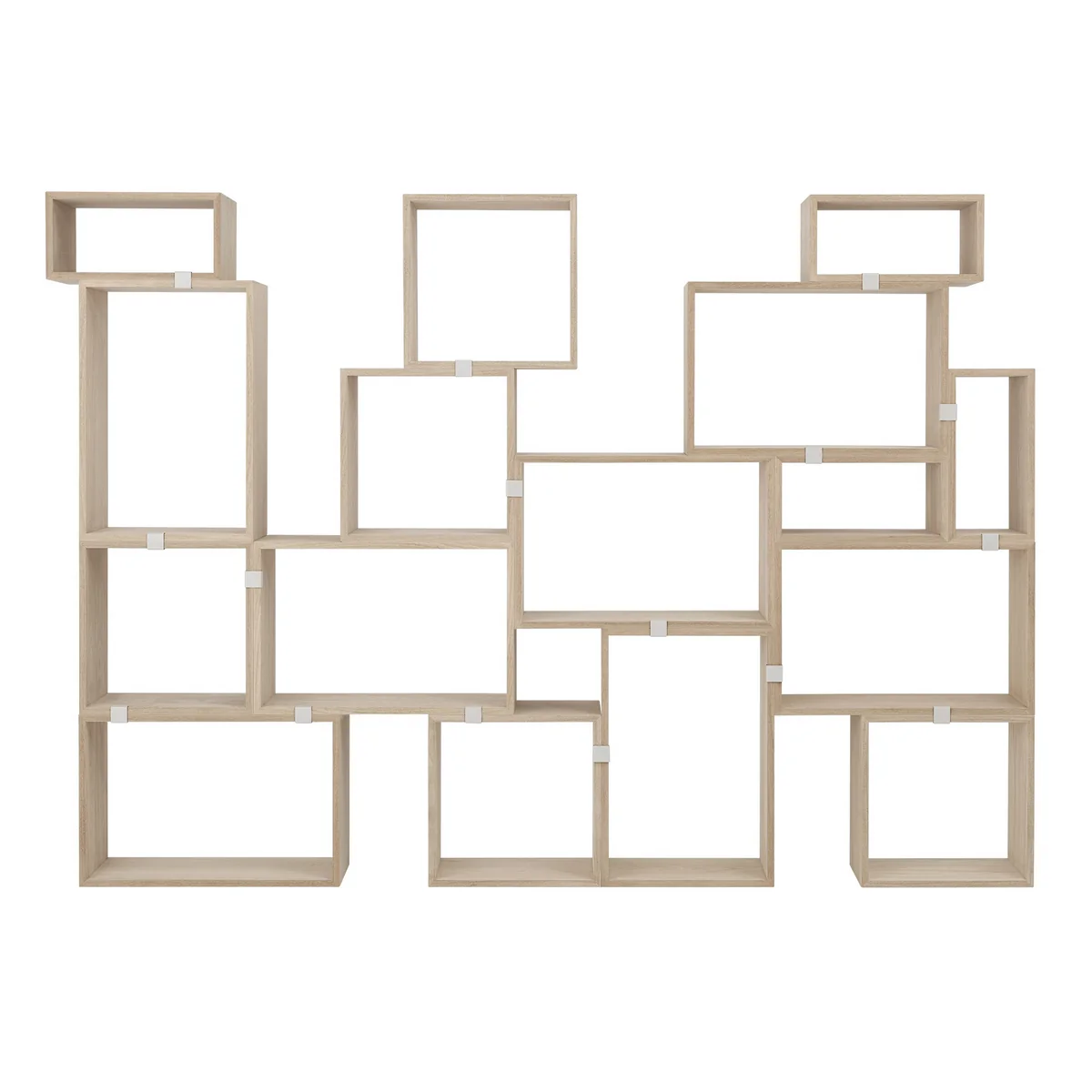 Les modules de l Mini Stacked Le système d'étagères est fabriqué en MDF avec un placage en chêne. Ils sont disponibles en différentes tailles et avec un panneau arrière de différentes couleurs. En raison de la variété des modules, l Mini Stacked Le système d'étagères peut être assemblé individuellement et s'adapte parfaitement à tous les goûts et à toutes les situations de la pièce.