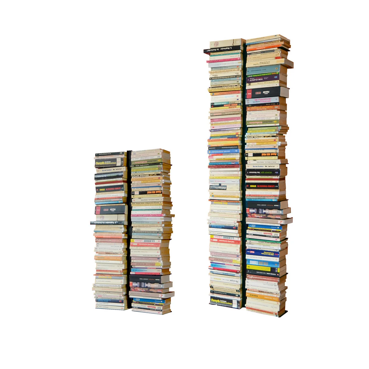 Booksbaum - l'étagère à livres de Radius Design . Vos livres semblent flotter dans l'espace, tenus par une main invisible. L'illusion est parfaite grâce aux étagères fines et discrètes, qui disparaissent sous le contenu. L'utilité pratique est également grande : grâce à la disposition horizontale des livres, les titres sont également plus faciles et plus rapides à reconnaître.