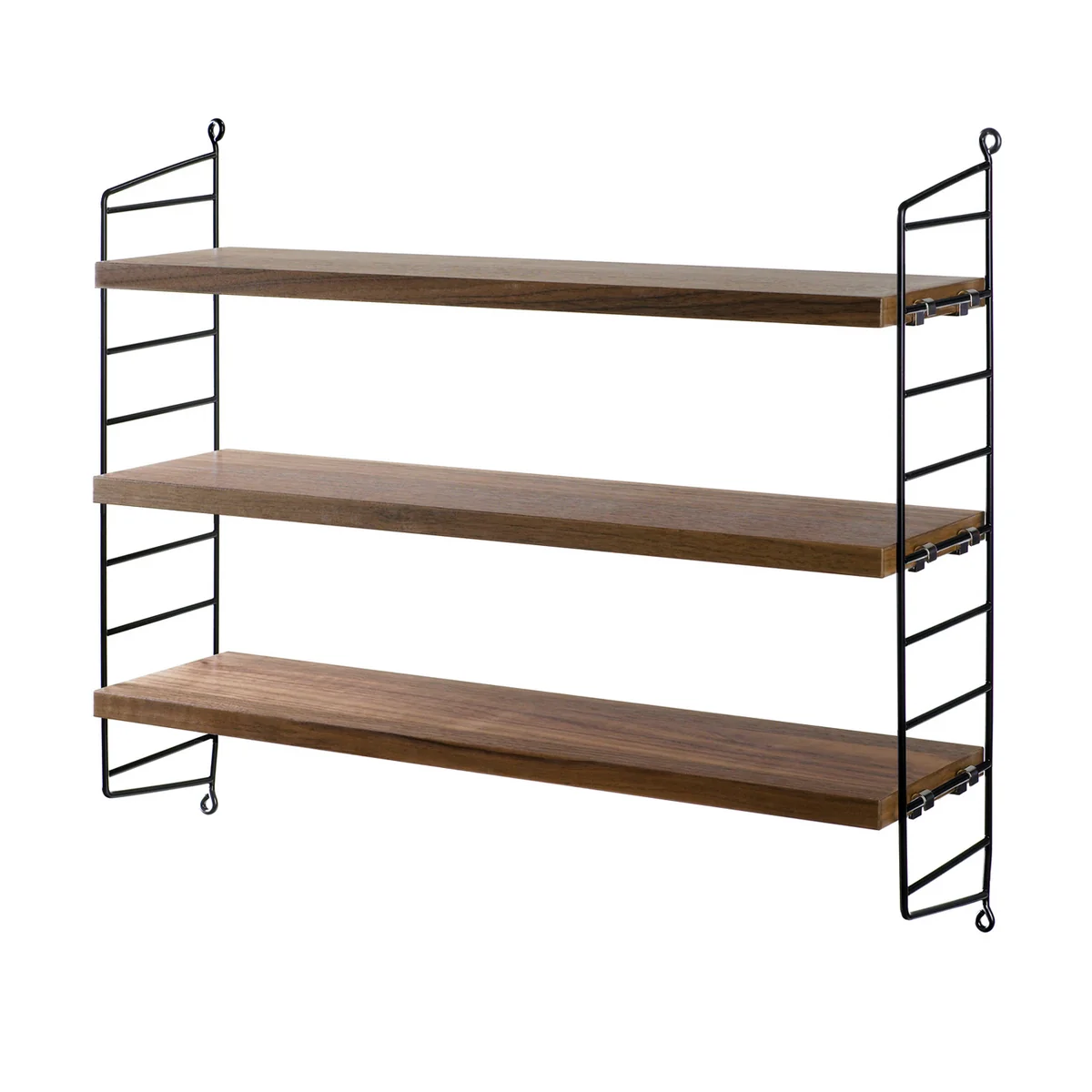 Le String Pocket Nisse Strinning se combine avec d'autres étagères et peut être agrandie aussi bien vers le haut que sur le côté. Les échelles de sol ne sont pas disponibles pour cette étagère. La livraison comprend deux éléments latéraux pour le montage mural et trois étagères assorties.