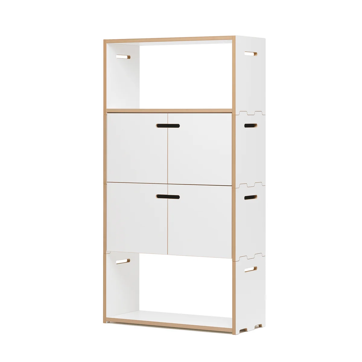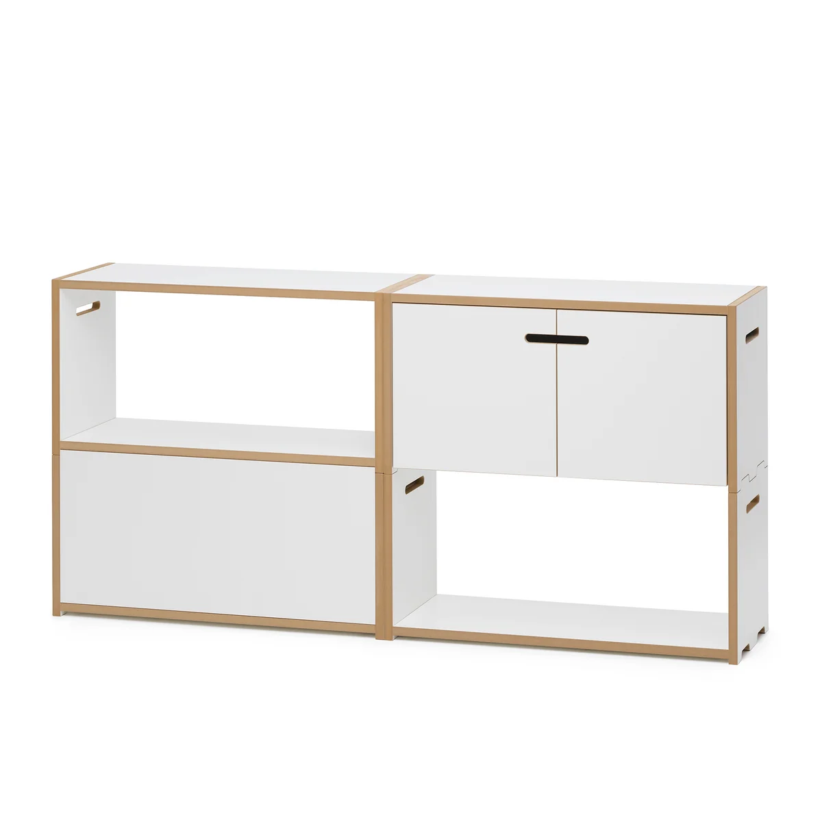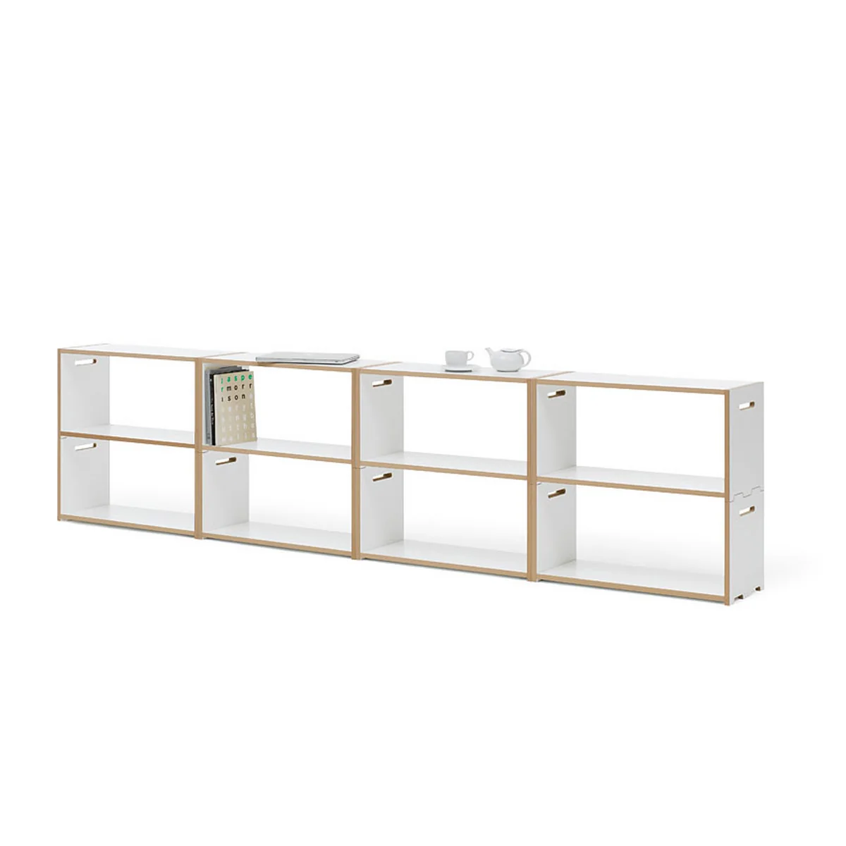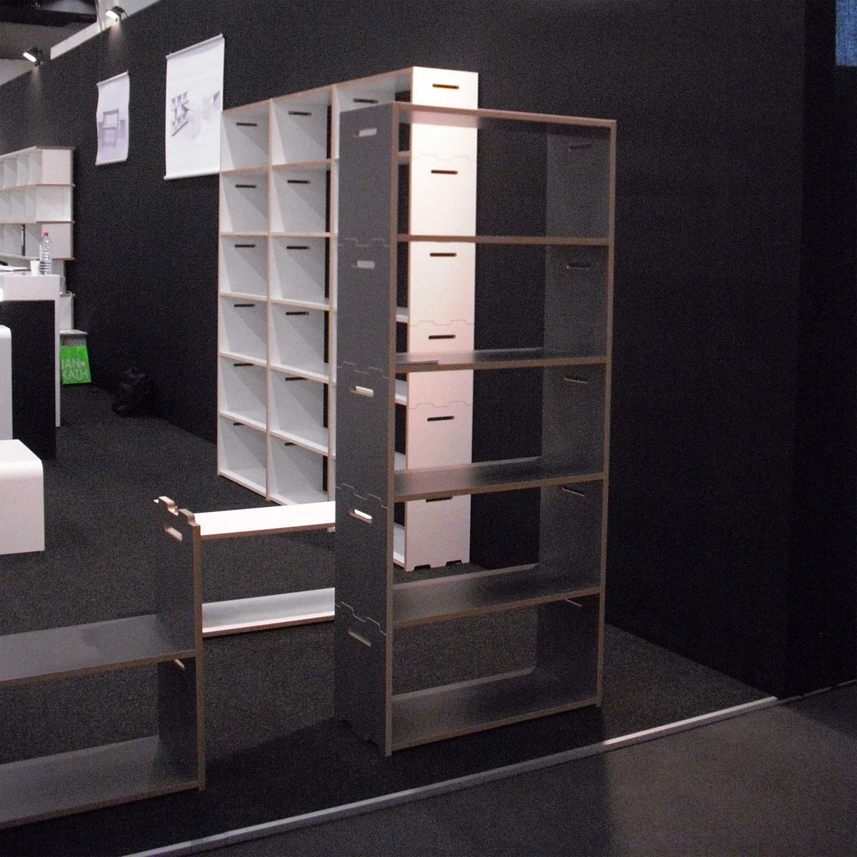 Hochstapler est un système d'étagères autoportant, extensible horizontalement et verticalement, de Tojo . Les différents modules disponibles peuvent être combinés entre eux dans n'importe quelle longueur et hauteur. Hochstapler peut être utilisé comme un buffet ainsi que comme une petite étagère. Si vous le souhaitez, il peut également être étendu pour former un mur d'étagères complet.