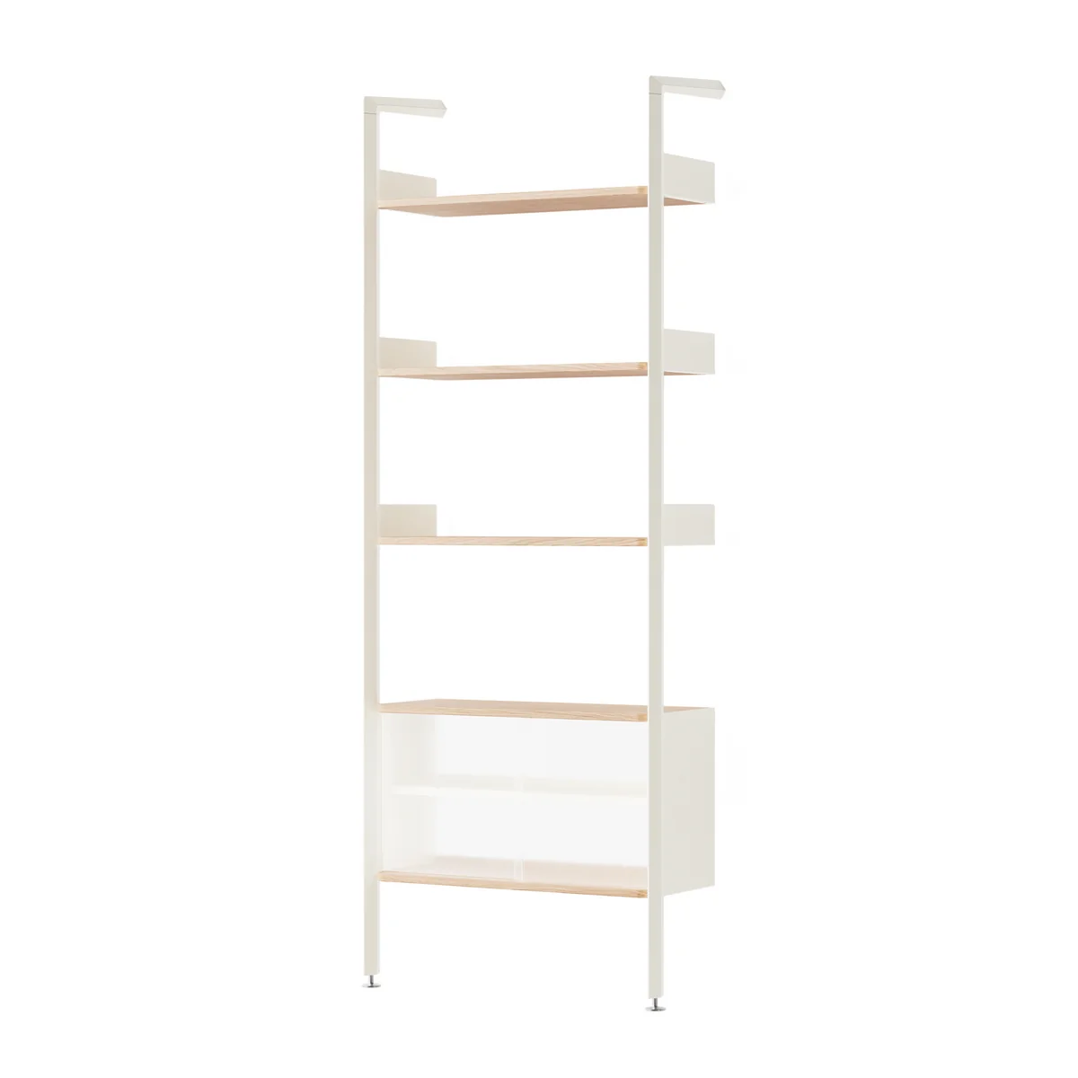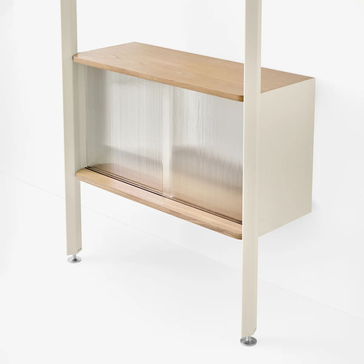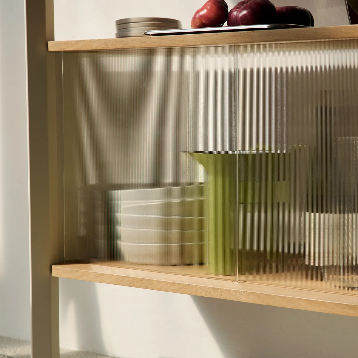 L'étagère Rombe IF3 avec élément de rangement de & Tradition ajoute au système modulaire Rombe une solution élégante pour un espace de rangement supplémentaire. Outre les étagères ouvertes, elle offre un module de rangement avec des portes en verre finement striées qui ajoutent une dimension tactile et visuelle. Derrière les portes, les objets peuvent être rangés de manière à la fois élégante et discrète, tandis que la structure ouverte offre suffisamment d'espace pour les livres, la décoration ou le matériel de travail.