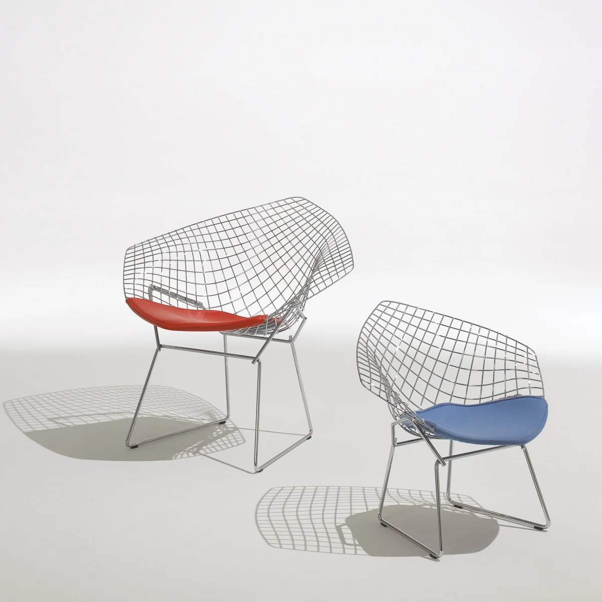 La Diamond Chair fait partie d’une série de sièges, chaises longues et tabourets que Harry Bertoia a créé au début des années 50. Tous les modèles de ces « meubles en fil métallique » sont travaillés et soudés à la main selon un procédé très compliqué. Harry Bertoia ayant une formation de sculpteur et d’orfèvre a considéré ses chaises comme une « étude de pièces, de formes et de métal ». Pour le fauteuil, il a tourné la pointe d’un carré vers le bas et l’a tiré légèrement. C’est un résultat agréable de jeu des formes : le fauteuil est d'aspect léger et confortable.