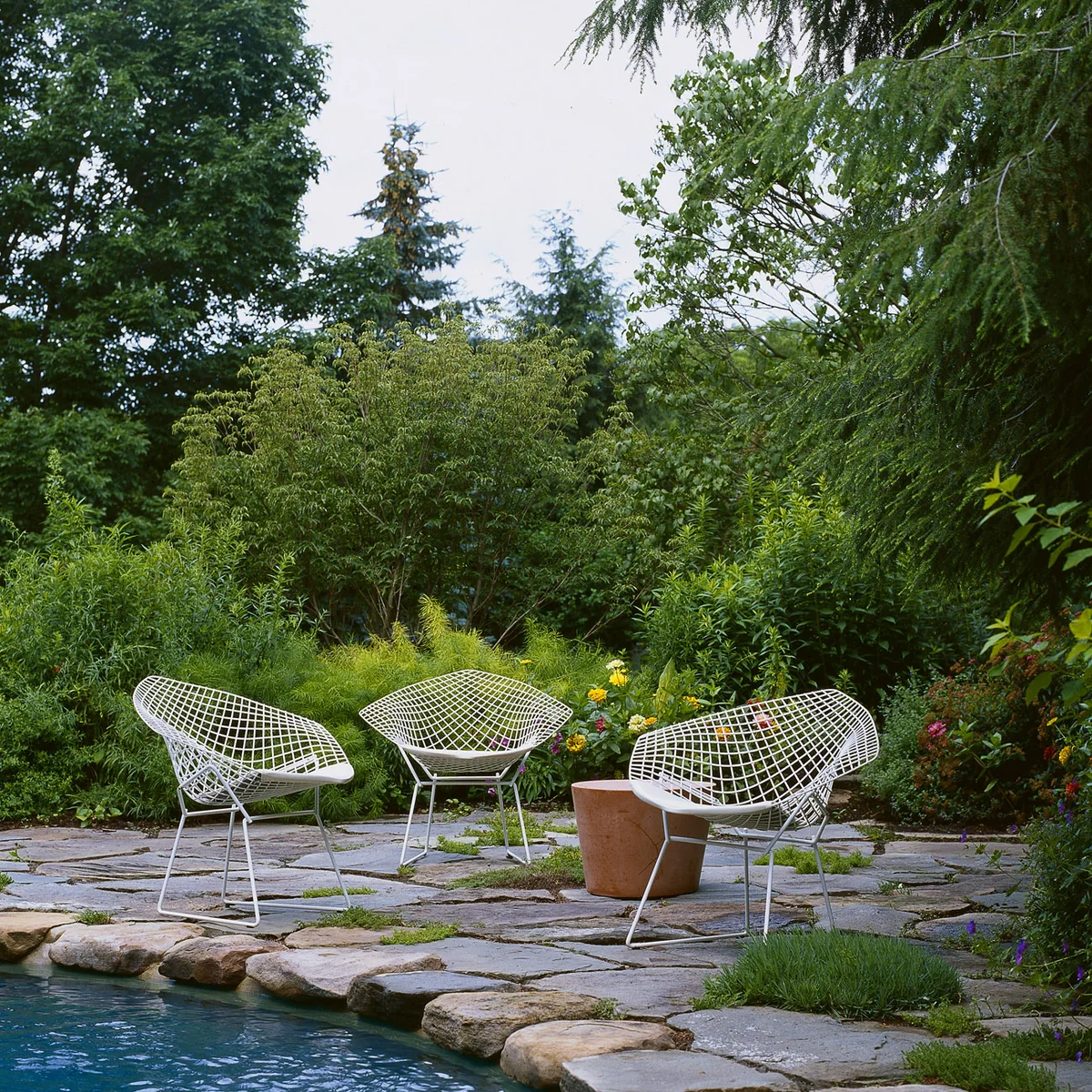 Peu importe qu'il soit chromé, satiné ou avec une finition en plastique (couche protectrice Rilsan), le cannage métallique du Diamond Chair conçu par Harry Bertoia et produit par Knoll était LE modèle pour des générations de jeunes designers ambitieux.