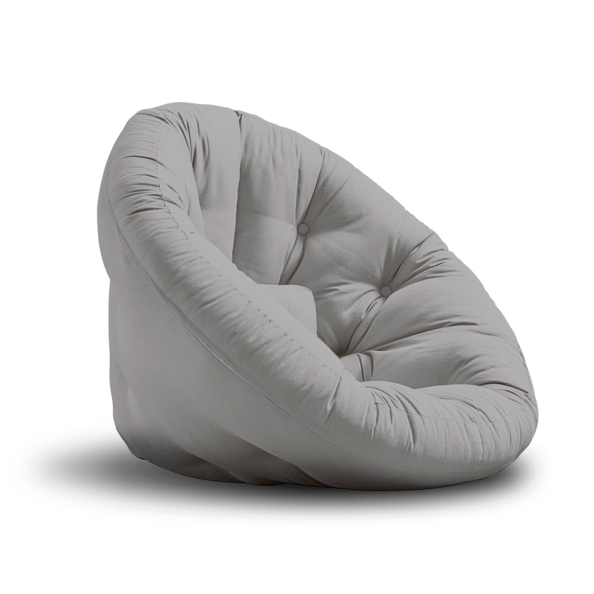 Nido de Karup est un futon en forme de demi-cercle qui se transforme en un confortable fauteuil en quelques gestes seulement à l'aide de quatre fixations velcro. Les deux variantes invitent à méditer, paresser, lire et dormir.