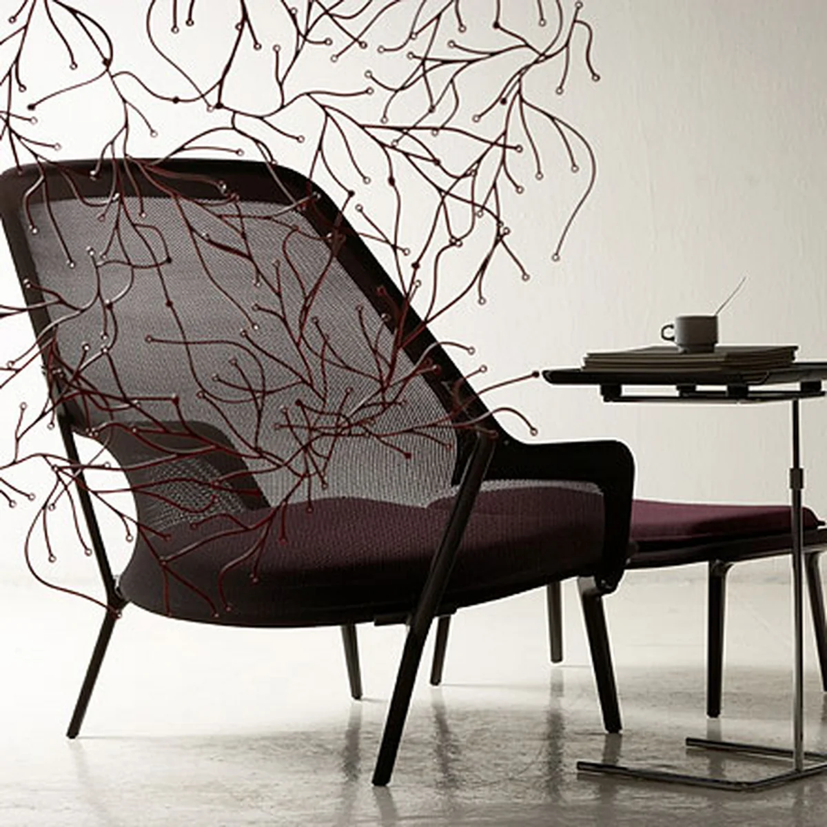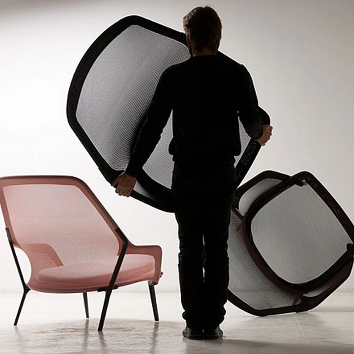 Avec leur Slow Chair, les frères Bouroullec réinterprètent le fauteuil : Une forme familière, luxuriante est combinée avec des matériaux légers et transparents chez le fauteuil produit par Vitra. De cette façon un contraste excitant entre la forme et le matériau est crée, qui est sans pareille en ce qui concerne le confort et le style.