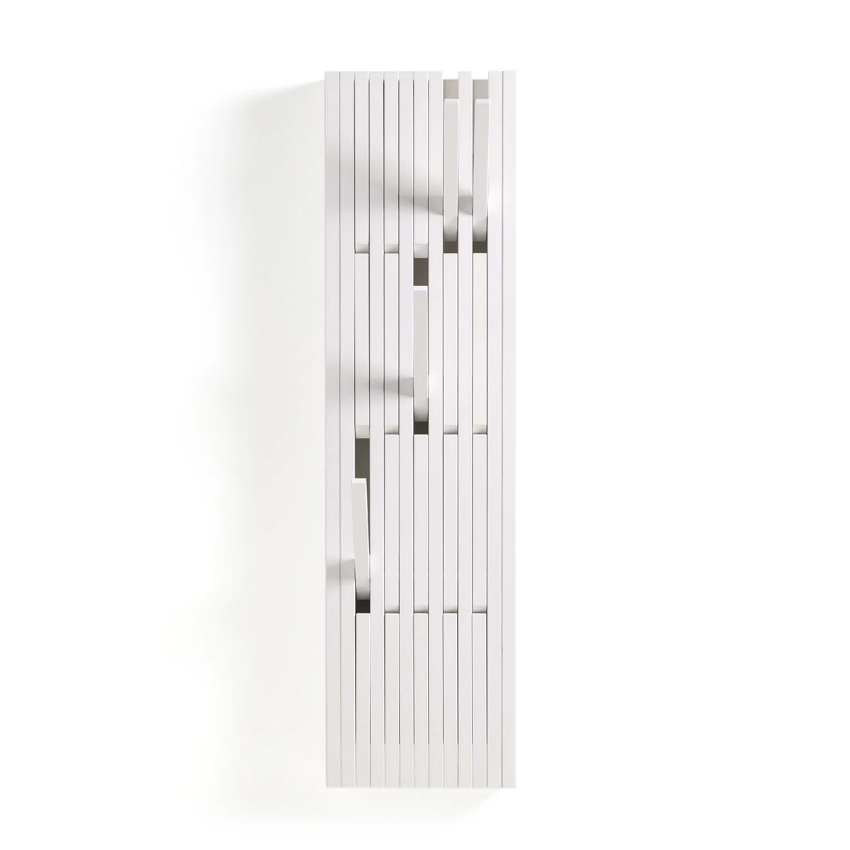 Grâce à ses nombreuses touches à différentes hauteurs, le portemanteau Piano est idéal pour porter les affaires de plusieurs personnes, comme des familles avec enfants. Les touches basses du piano de Peruse sont facilement accessibles, même pour les petits enfants. Si le portemanteau n’est pas utilisé, toutes les touches peuvent être repliées, ce qui laisse place à une décoration murale rustique et élégante.