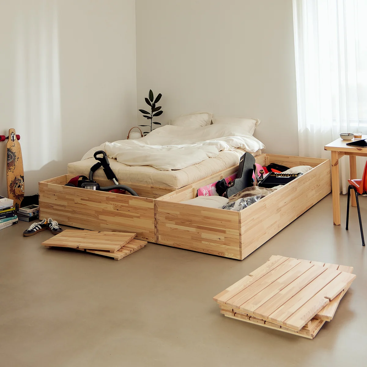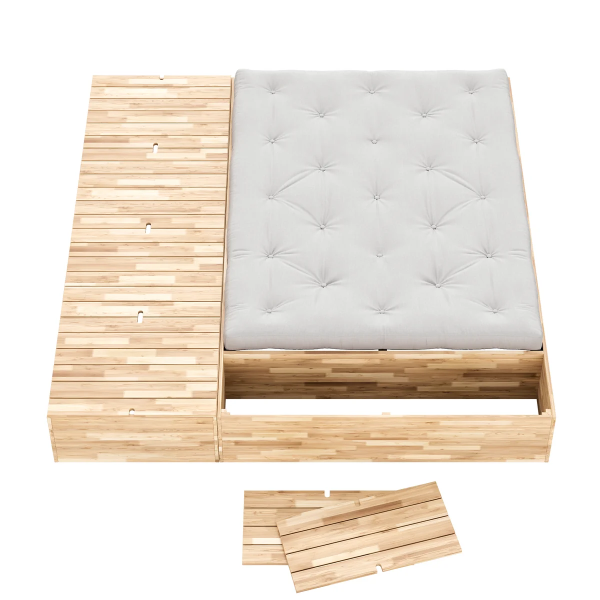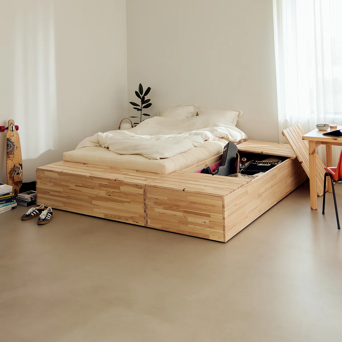 Le lit Basement de Karup Design, conçu par C.F. Møller Architects, offre la combinaison parfaite d'un espace de couchage et d'un espace de rangement. Ce design astucieux est particulièrement idéal pour les petits appartements où chaque mètre carré compte. Sous le lit se cache un vaste espace de rangement pour tous les objets que tu souhaites garder hors de vue, mais à portée de main. La version avec banc de rangement sert à la fois de siège et d'espace de rangement supplémentaire, ce qui fait du lit un meuble polyvalent et multifonctionnel. Le lit Basement n'est pas seulement pratique, il crée aussi une atmosphère confortable qui transforme ta chambre à coucher en un lieu de rencontre pour tes amis - idéal pour se détendre.
