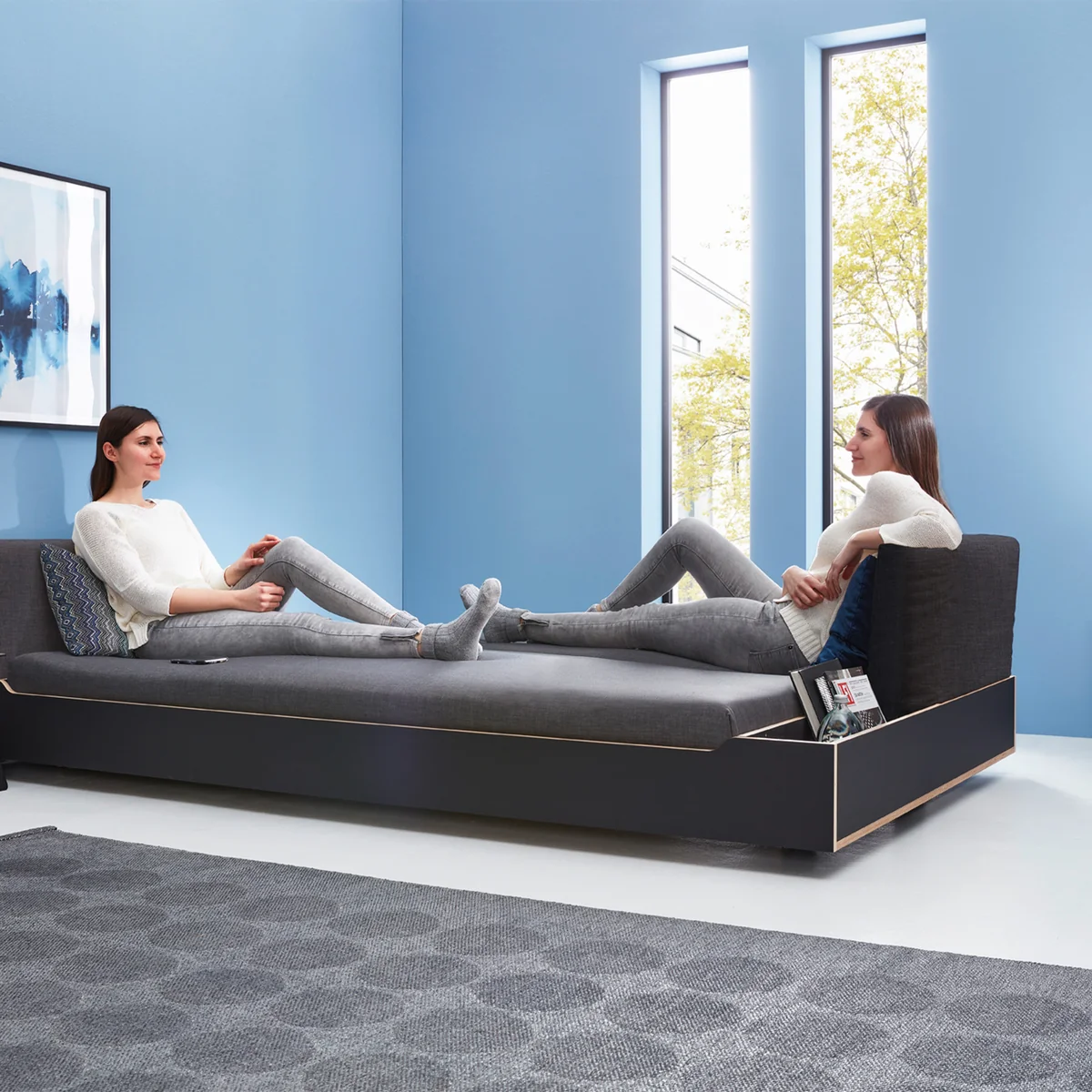 Le site Maude de Müller Small Living est un lit classique conçu pour répondre aux exigences modernes. Le design est dû à l'architecte suisse Michael Mettler, qui a ajouté des caractéristiques pratiques aux avantages d'un lit confortable et élégant : Ce lit fin et peu encombrant est doté de compartiments au pied et à la tête du lit pour ranger des livres et autres. L'appui-tête, qui se compose de deux parties, constitue un atout particulier. En fonction de vos besoins, il est également possible de l'accrocher dans les compartiments situés aux extrémités opposées pour transformer le lit en un canapé-lit, en un canapé-lit ou en un canapé-lit. Maude le lit comme un canapé-lit, un canapé ou pour travailler sur un ordinateur portable.