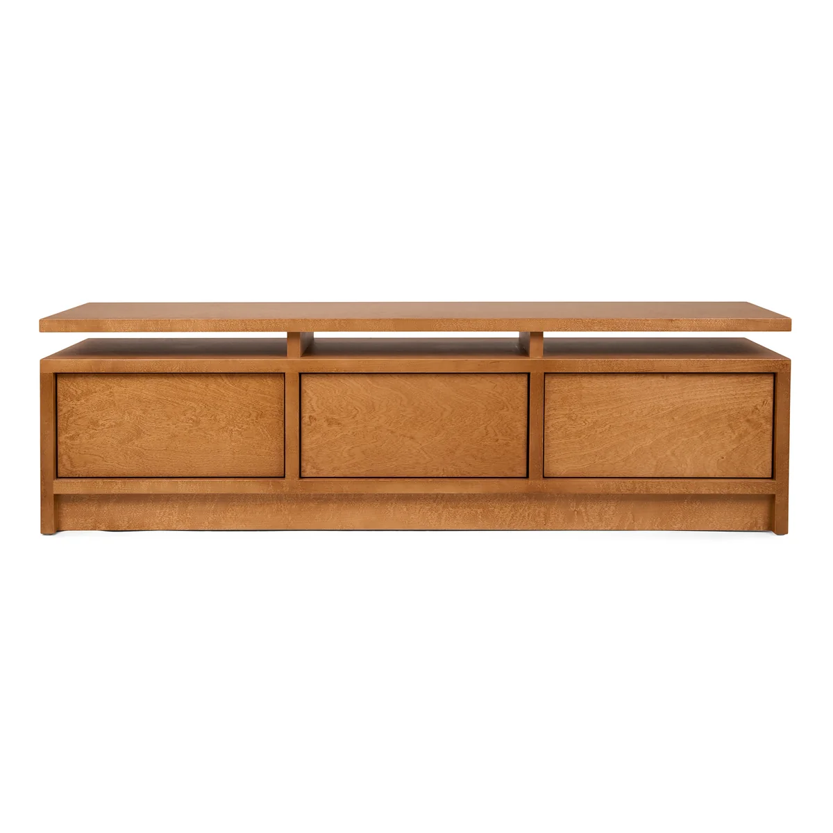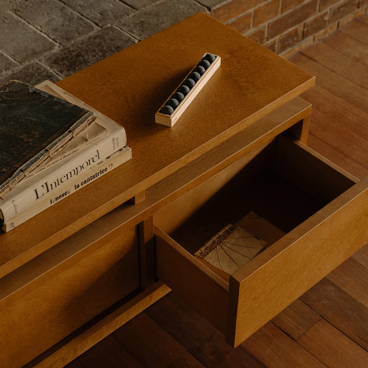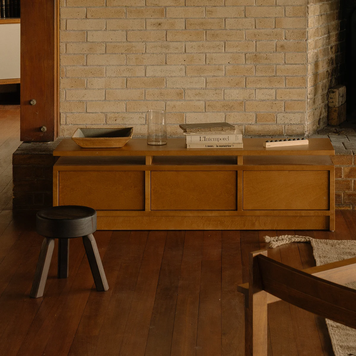 Le lowboard Ratio allie un espace de rangement généreux à un design qui donne l'impression de flotter. Fabriqué en MDF, placage bouleau et bouleau massif dans une chaude teinte brune, il séduit par la finesse de ses veines de bois et ses finitions de qualité. Trois tiroirs push-to-open sur des glissières silencieuses soft-close offrent un espace généreux pour les objets du quotidien, tandis que le compartiment ouvert et dissimulé sur le dessus de la console lui confère une subtile légèreté. Avec sa forme claire et équilibrée, le buffet bas Ratio s'intègre harmonieusement dans les intérieurs modernes et classiques.