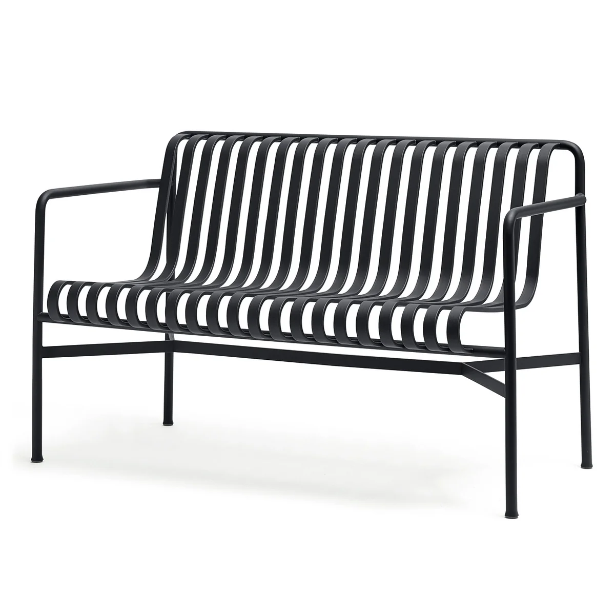Le banc Palissade Dining de HAY est un banc de jardin qui convient parfaitement aux agréables soirées barbecue dans le jardin. Avec son dossier et ses accoudoirs, ce banc offre un grand confort. La forme ergonomique du banc permet de s'y adosser confortablement, même sans rembourrage.