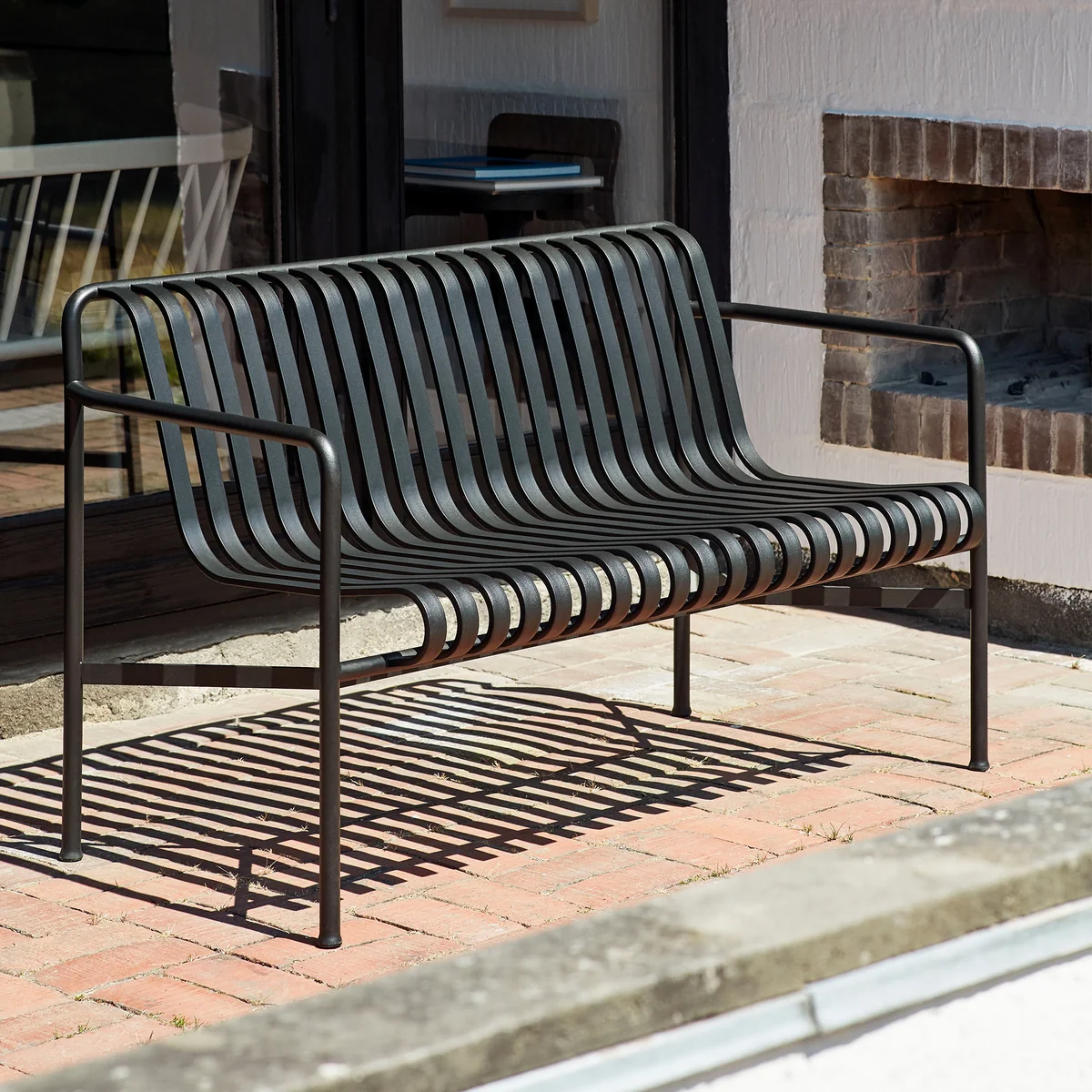 Le banc Palissade Dining de HAY est un banc de jardin qui convient parfaitement aux agréables soirées barbecue dans le jardin. Avec son dossier et ses accoudoirs, ce banc offre un grand confort. La forme ergonomique du banc permet de s'y adosser confortablement, même sans rembourrage.