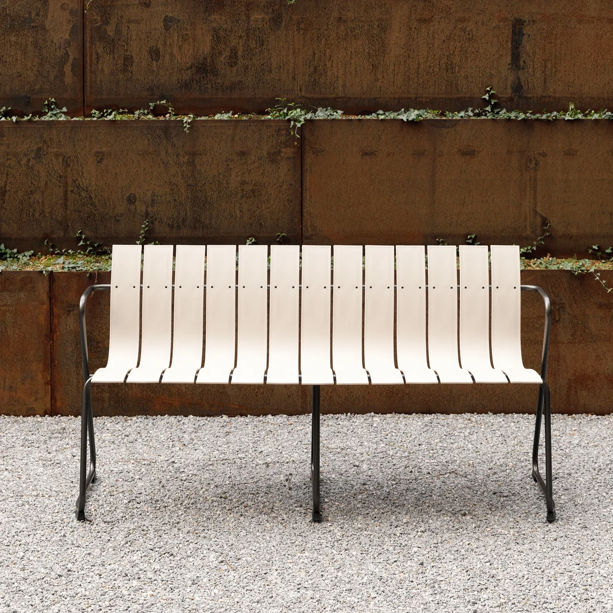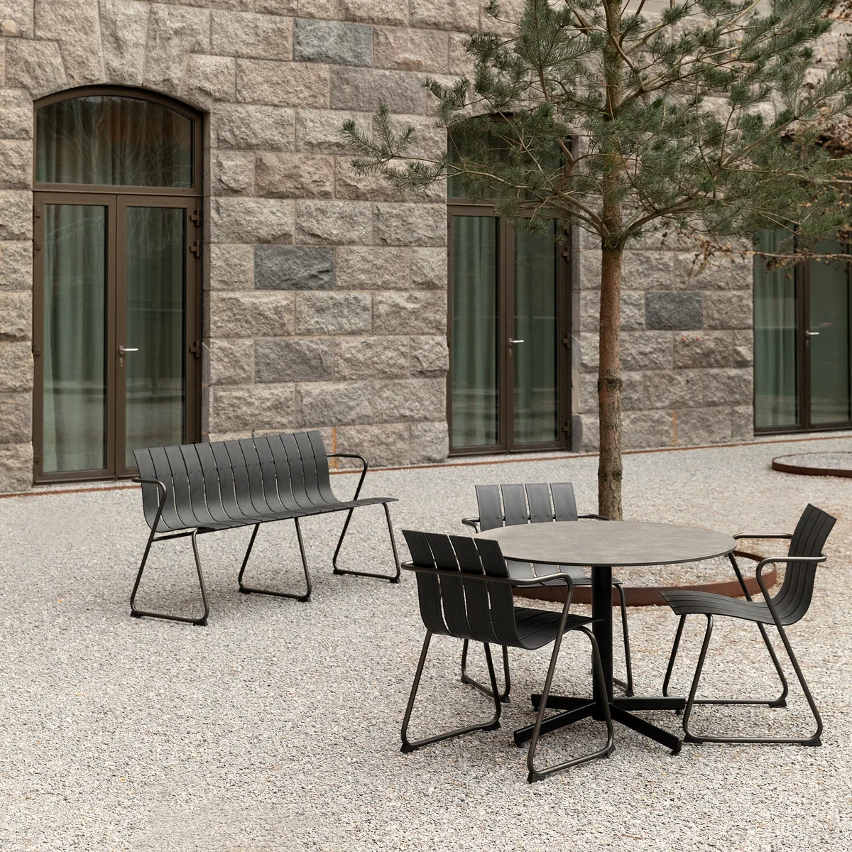 Le Ocean banc de Mater fait partie d'une série de tables et de chaises qui a été conçue dès 1955 par Nanna Ditzel. Cette nouvelle édition réinterprète des meubles danois classiques en plastique recyclé provenant de la mer. Le banc est disponible en différentes longueurs et se compose d'une structure en acier avec une surface brunie et de plateaux en filets de pêche recyclés et en plastique dur. Le banc convient aussi bien à l'intérieur qu'à l'extérieur et assure un look moderne et rectiligne à l'intérieur comme à l'extérieur.