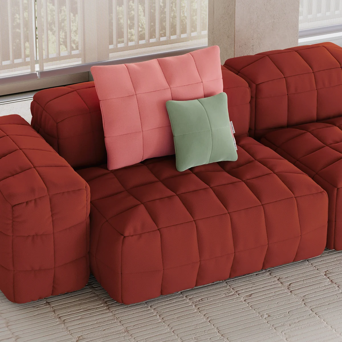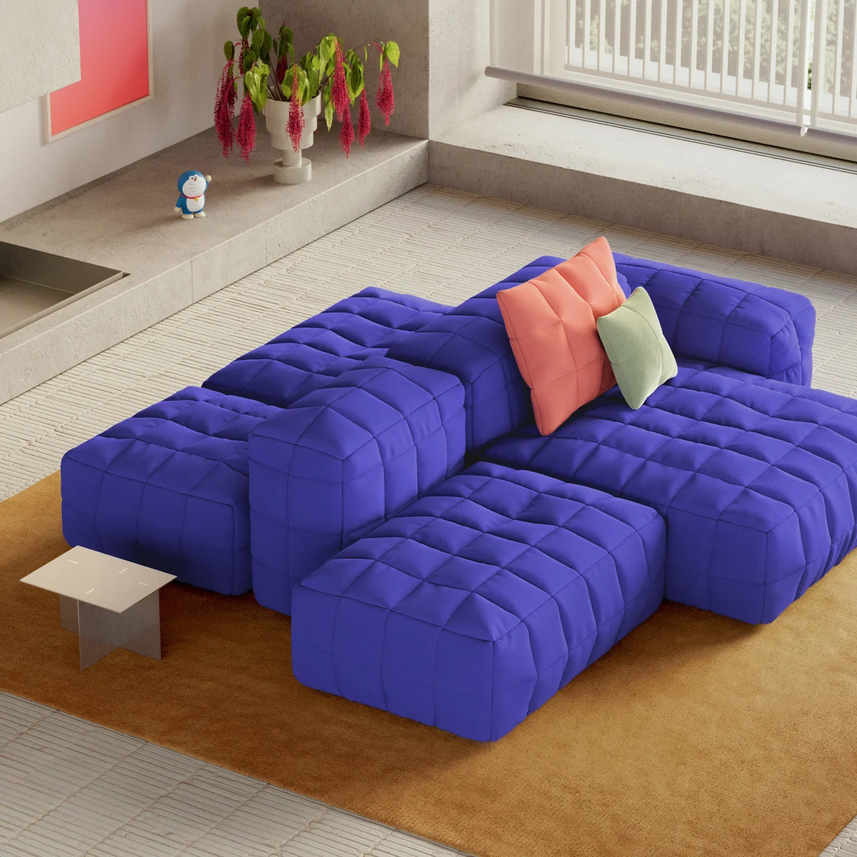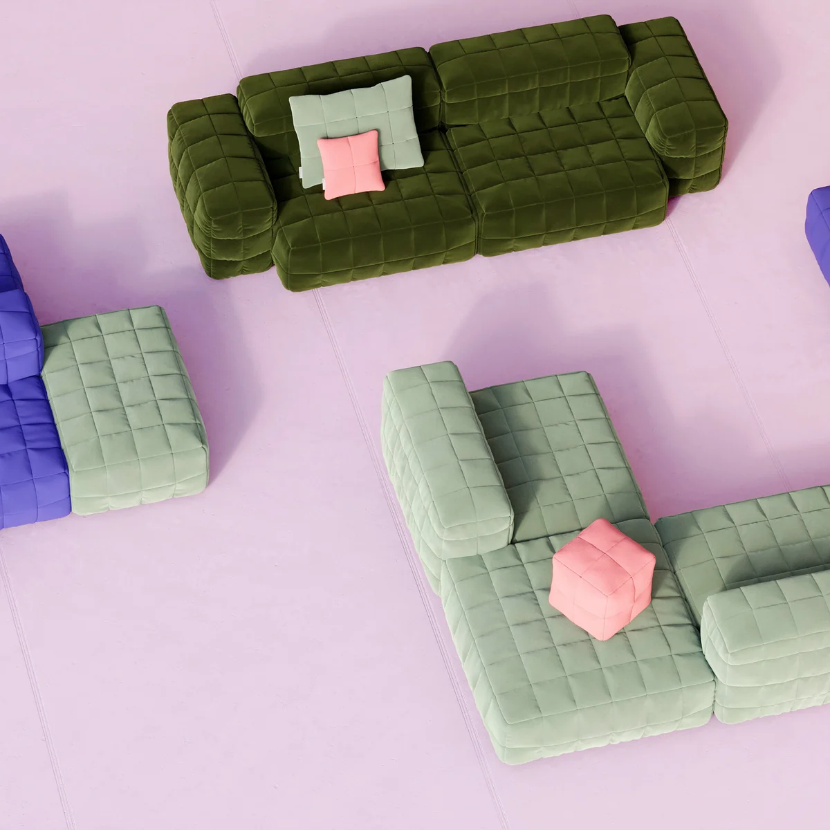 Le concept de design est basé sur le principe de la liberté modulaire : comme dans Tetris, les modules soigneusement conçus peuvent être combinés individuellement et adaptés de manière flexible à chaque situation d'habitation - qu'il s'agisse d'un canapé d'angle généreux, d'un canapé compact à deux places ou d'une solution lounge créative. Les revêtements sont facilement amovibles et disponibles dans une multitude d'univers de couleurs audacieux et modernes.