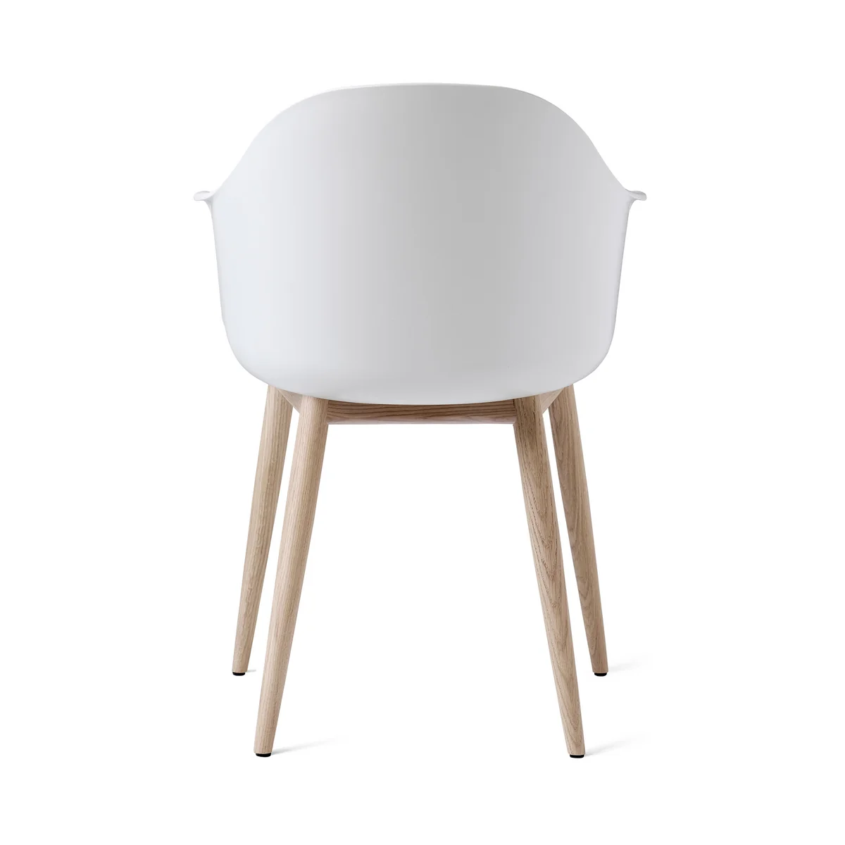 Le site Harbour Chair est fabriqué en bois et en polypropylène. Le piètement à quatre pieds ronds en bois de chêne, qui se rétrécissent vers le bas, supporte la coque d'assise en plastique renforcé de fibres de verre, disponible dans de nombreux coloris. La chaise avec accoudoirs s'adapte ainsi parfaitement à chaque ambiance et peut être placée comme chaise discrète à la table de la salle à manger ou comme accroche-regard dans le couloir.