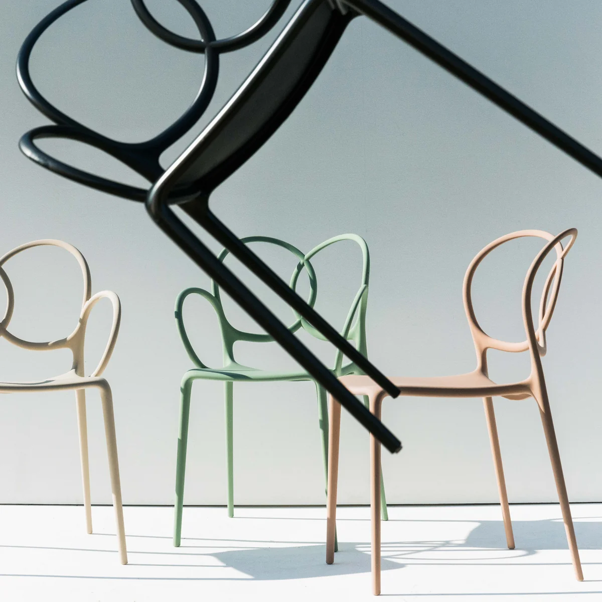 La chaise Sissi de Driade est une chaise moderne et polyvalente. Avec sa forme féminine et sinueuse, elle est un accent design affirmé dans n'importe quel environnement - on dirait presque que les anneaux entrelacés caractéristiques du dossier ont été formés par les mains des artisans viennois du 20. siècle ! Le design est synonyme de formes rondes et organiques et d'assemblages répétitifs qui s'inspirent des célèbres chaises viennoises. Il a été conçu par le couple de designers italiens Ludovica et Roberto Palomba.