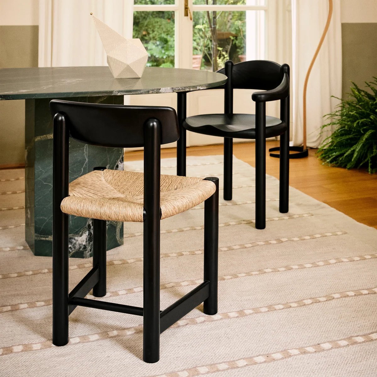 L'assise et le dossier ergonomiques assurent un grand confort, tandis que les finitions solides confèrent stabilité et authenticité. Les veines visibles du bois et les légères irrégularités font de chaque chaise une pièce unique et soulignent son caractère proche de la nature.