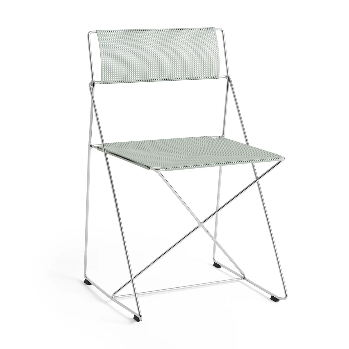 La chaise X-Line de HAY, conçue à l'origine par Niels Jørgen Haugesen à la fin des années 1970, est un classique intemporel du design moderne. Fabriquée en filigrane de métal, la chaise reflète le style industriel et la construction précise en acier du mouvement high-tech des années 70.