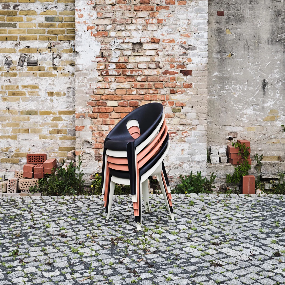 La chaise Bell Chair de Magis convainc autant par son matériau écologique en polypropylène 100% recyclé que par sa stabilité et son design. La chaise en plastique empilable est un design de Konstantin Grcic .