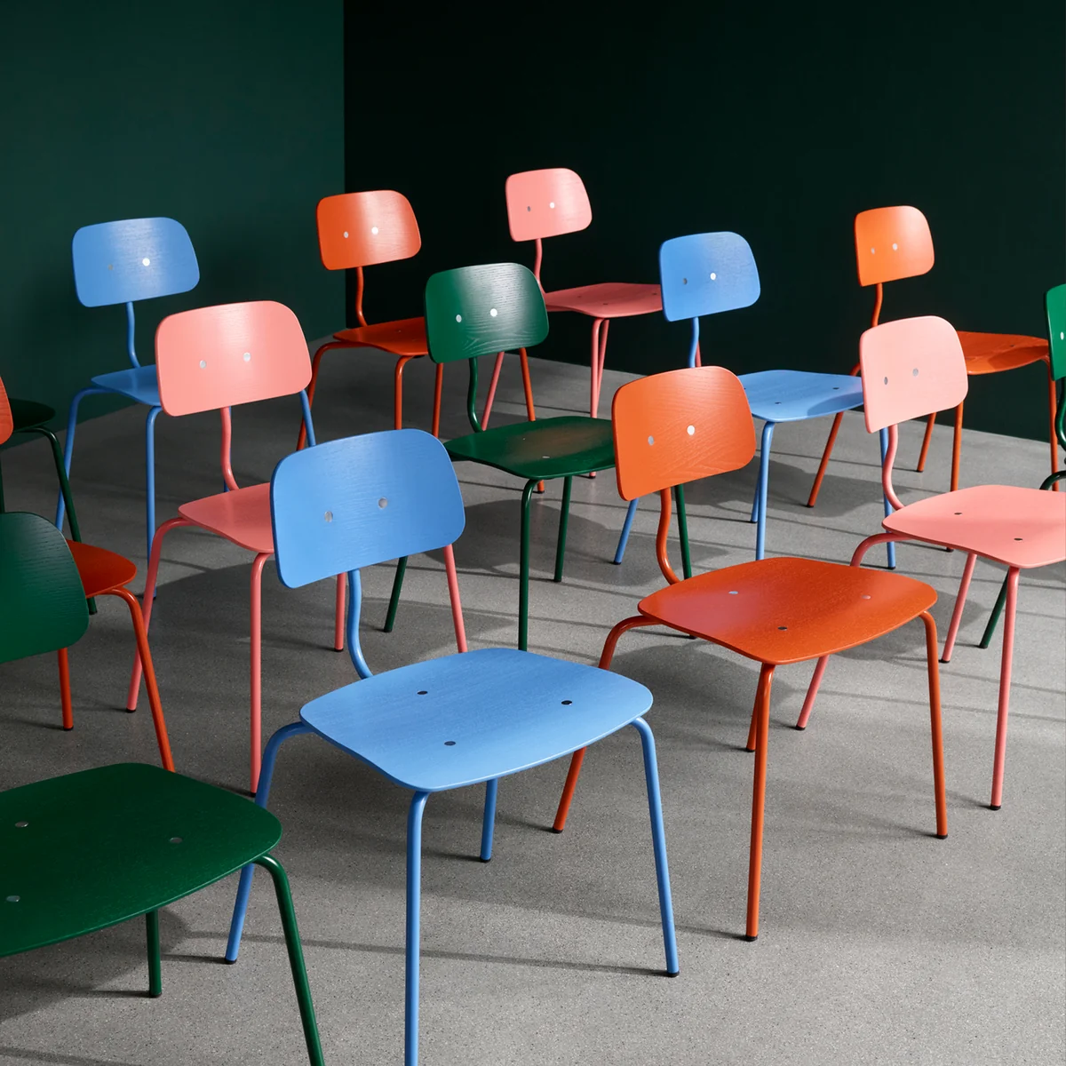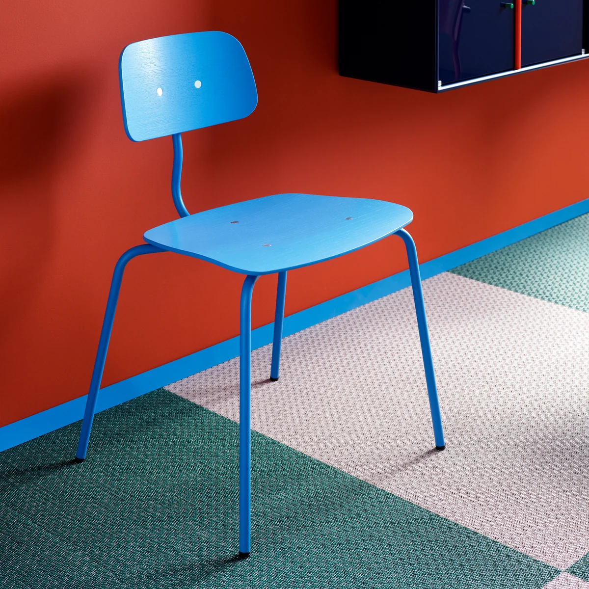 La chaise KEVI 2060 de Montana présente un aspect architectural et iconique qui est particulièrement mis en valeur par les couleurs vives. Le design est né de la plume de l'architecte Jørgen Rasmussen, qui a habillé les chaises de différents manteaux sans perdre le design d'origine.