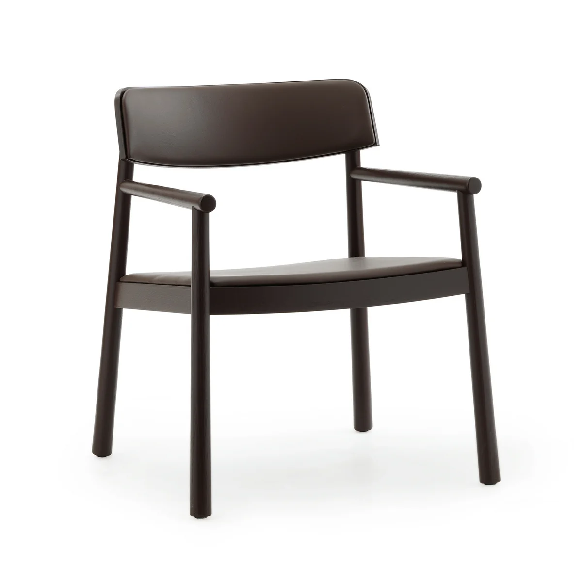 Fabriquée en bois de frêne, elle se caractérise par des Timb se distingue par des détails artisanaux visibles tels que les élégants assemblages à chevilles qui permettent une construction sans vis. En plus des variantes en tan et noir, la chaise est désormais disponible dans une teinte marron intense.