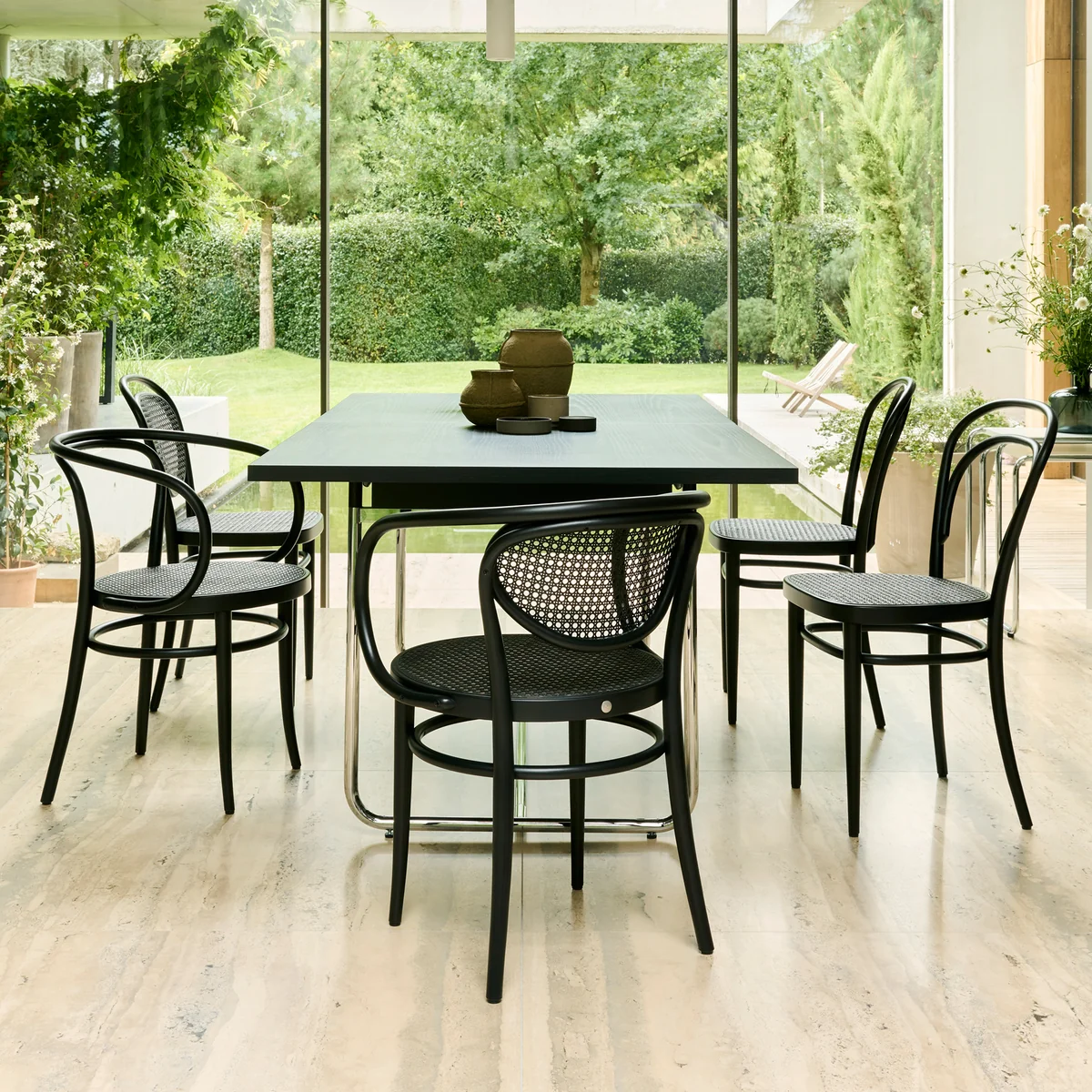 Thonet - 215 R Chaise en bois courbé, cannage Dark Melange avec tissu de soutien synthétique / hêtre noir (TP 29)