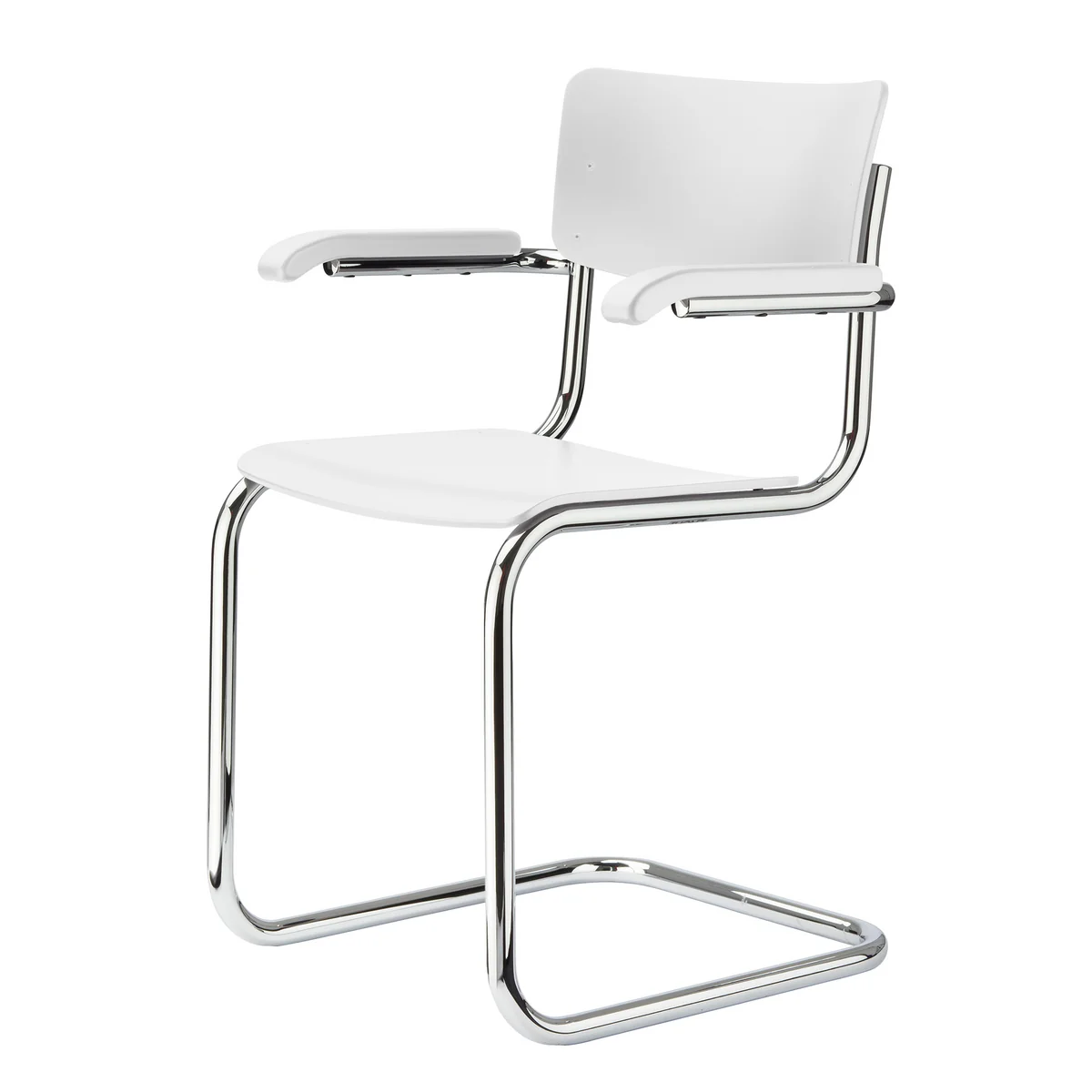 Le fauteuil cantilever a été conçu par Mart Stam en 1931 et est aujourd'hui le classique de la gamme Thonet. Stam combine sur le S 43 F, l’acier tubulaire avec des coques de contre-plaqué moulé et les accoudoirs et crée ainsi une confortable siège cantilever, qui vous invite à la flânerie.