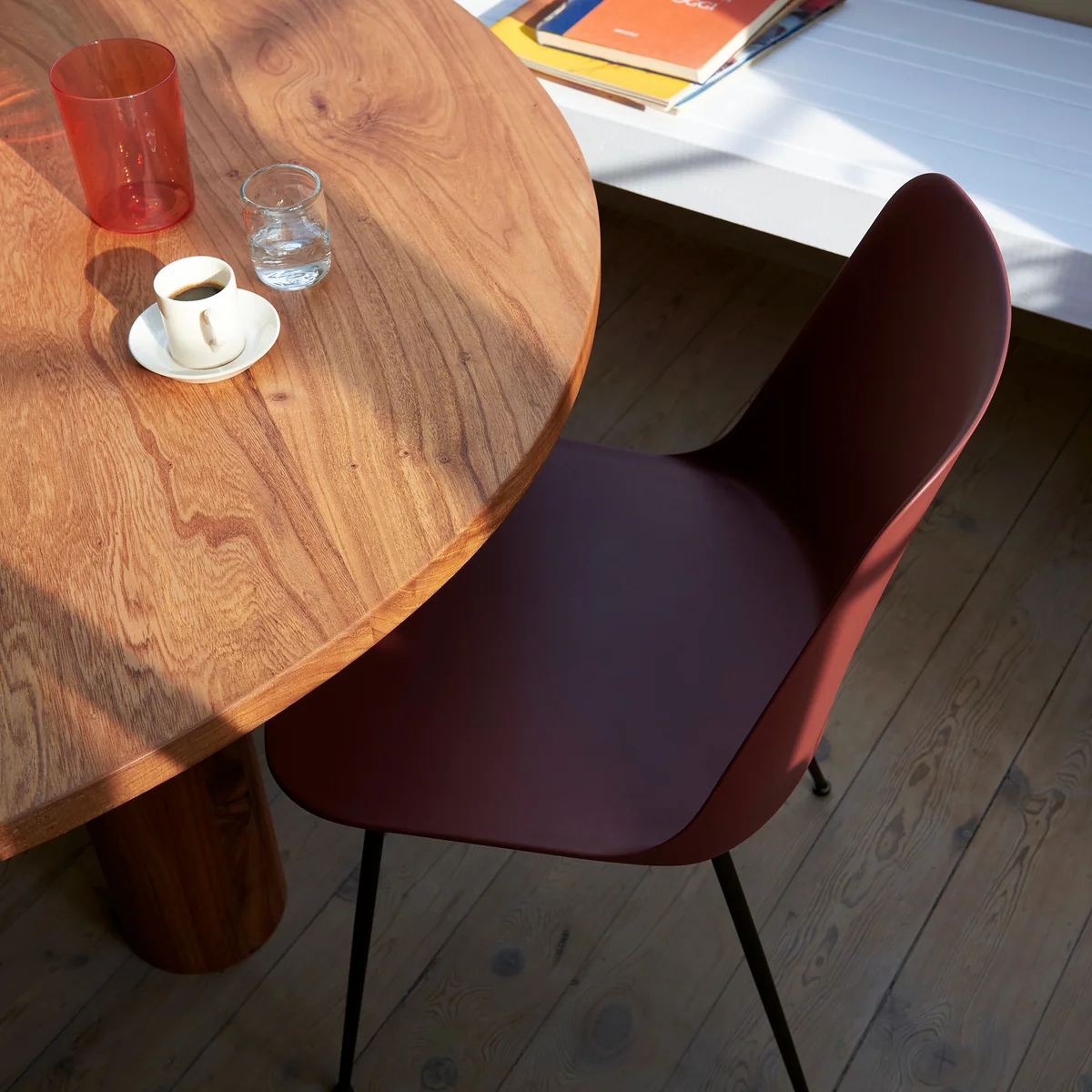 La chaise Rely Chair HW6 de & Tradition est un meuble design contemporain avec une coque d'assise souple en plastique recyclé. Celui-ci provient, selon sa couleur, de panneaux noirs récupérés dans l'habitacle d'une voiture ou de déchets post-industriels mélangés à des pigments de couleur.