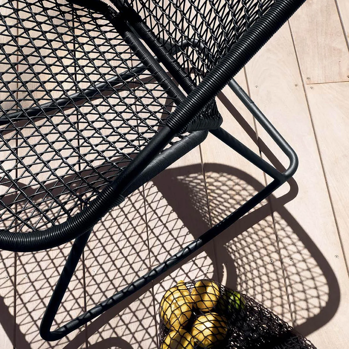La structure de la chaise est fabriquée en tube d'aluminium et l'assise en tressage de fibres synthétiques d'extérieur en polyéthylène. Ces deux éléments confèrent à la chaise une très grande durabilité. Le fauteuil à bascule peut être utilisé aussi bien à l'intérieur qu'à l'extérieur.