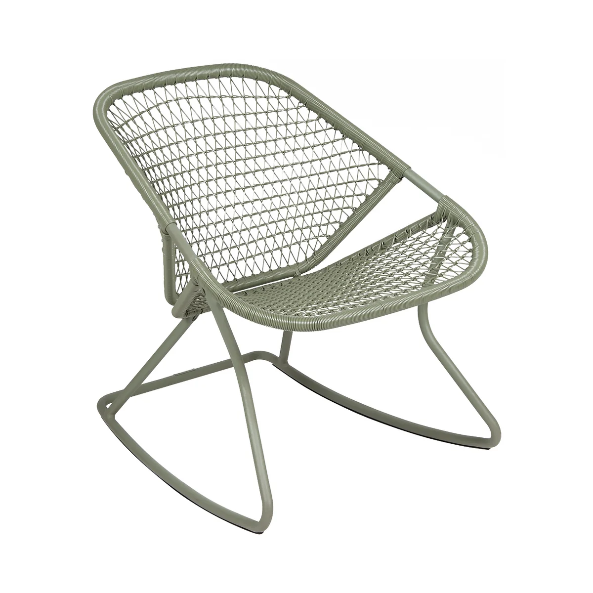 La structure de la chaise est fabriquée en tube d'aluminium et l'assise en tressage de fibres synthétiques d'extérieur en polyéthylène. Ces deux éléments confèrent à la chaise une très grande durabilité. Le fauteuil à bascule peut être utilisé aussi bien à l'intérieur qu'à l'extérieur.