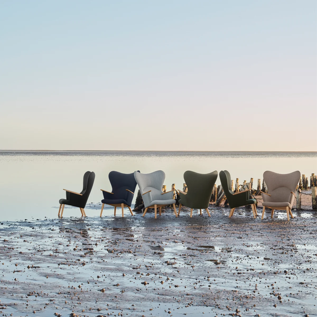 Affectueusement appelé Mama Bear Lounge Chair, le CH78 de Carl Hansen est défini par des courbes accueillantes qui offrent une étreinte chaleureuse. Son caractère particulièrement esthétique résulte de la manière dont il équilibre des formes douces et arrondies avec des géométries dynamiques et des détails délicats comme les griffes en bois sur les accoudoirs.