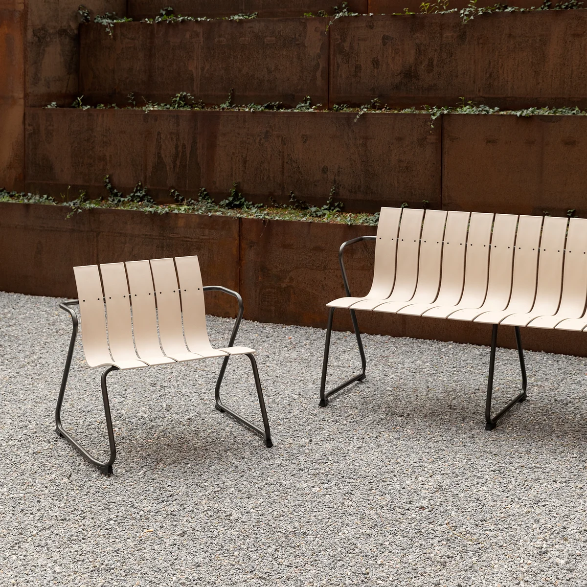 Mater utilise pour la chaise lounge du plastique recyclé provenant de l'entreprise danoise de technologies propres Plastix, l'une des seules entreprises de recyclage mécanique au monde. Plastix transforme les filets de pêche, les chaluts, les cordes et autres produits de déchets plastiques jetés en matières premières plastiques recyclées précieuses, appelées "plastiques verts". Avant d'être transformés en perles recyclées de Green Plastics, les filets de pêche sont triés, analysés et nettoyés avant d'être transformés en boulettes lors de l'étape finale. Les billes de plastique sont ensuite liquéfiées et injectées dans un moule afin qu'elles puissent servir de lamelles de table flexibles pour la chaise Ocean.