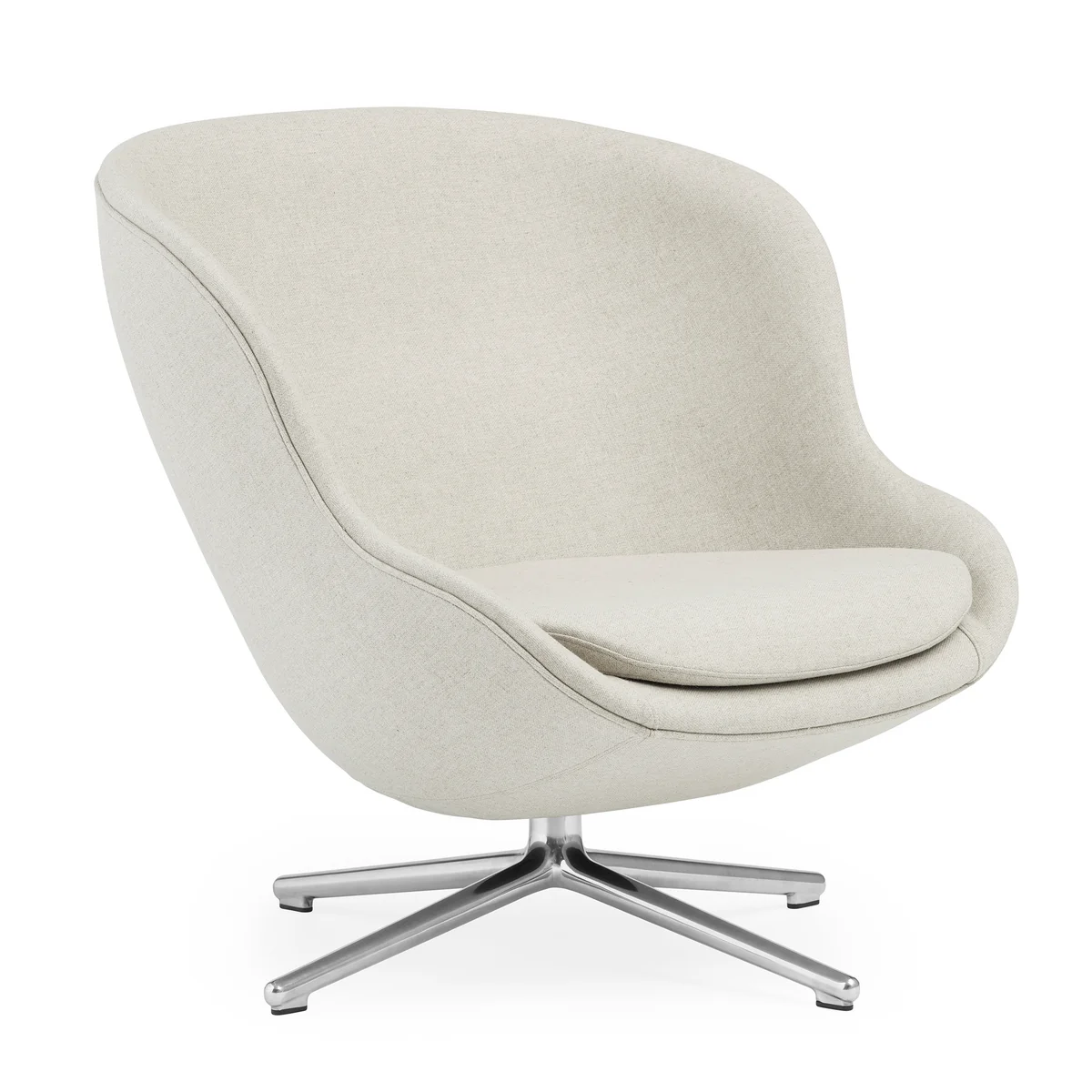Norman Copenhagen fabrique le Hyg Lounge est fabriqué à partir d'une structure en aluminium et d'une coque d'assise renforcée par de l'acier. Le rembourrage est recouvert d'un tissu du fabricant Camira, composé de laine vierge douce.