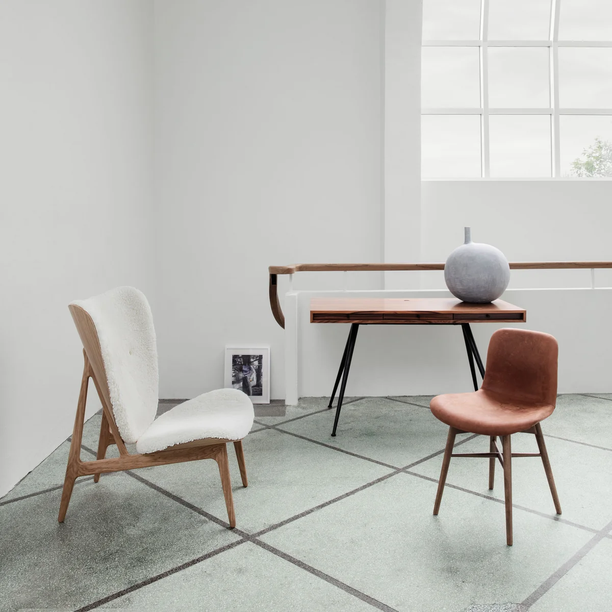 Le site Elephant Lounge Le fauteuil de Norr11 , conçu par Kristian Sofus Hansen et Tommy Hyldahl, est une interprétation moderne du minimalisme scandinave combiné à l'esthétique japonaise. Le design s'inspire des chaises rembourrées danoises des années 1950. Le résultat est un fauteuil léger et élégant dont le dossier s'incurve doucement autour du corps comme l'oreille d'un éléphant, offrant ainsi un confort maximal.